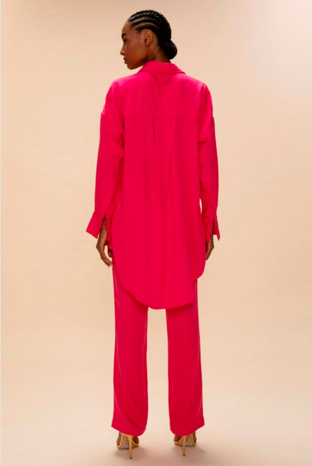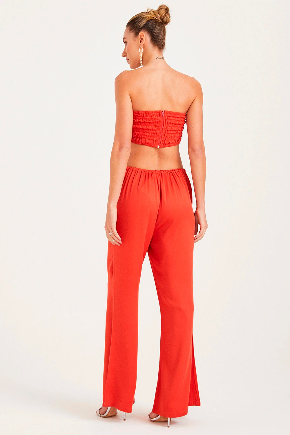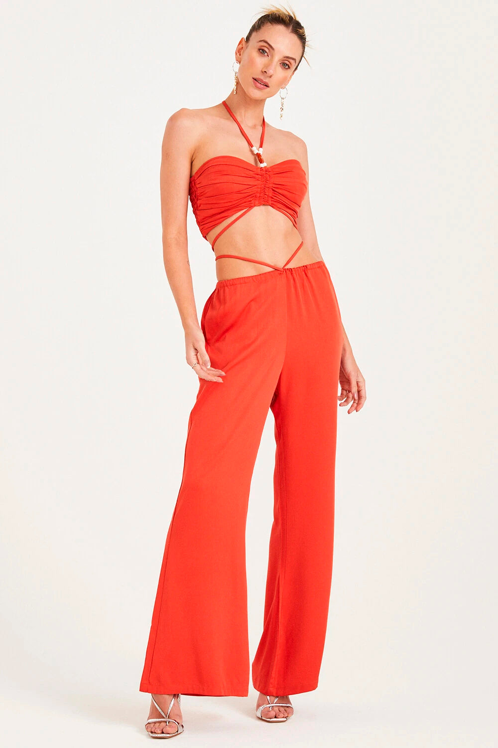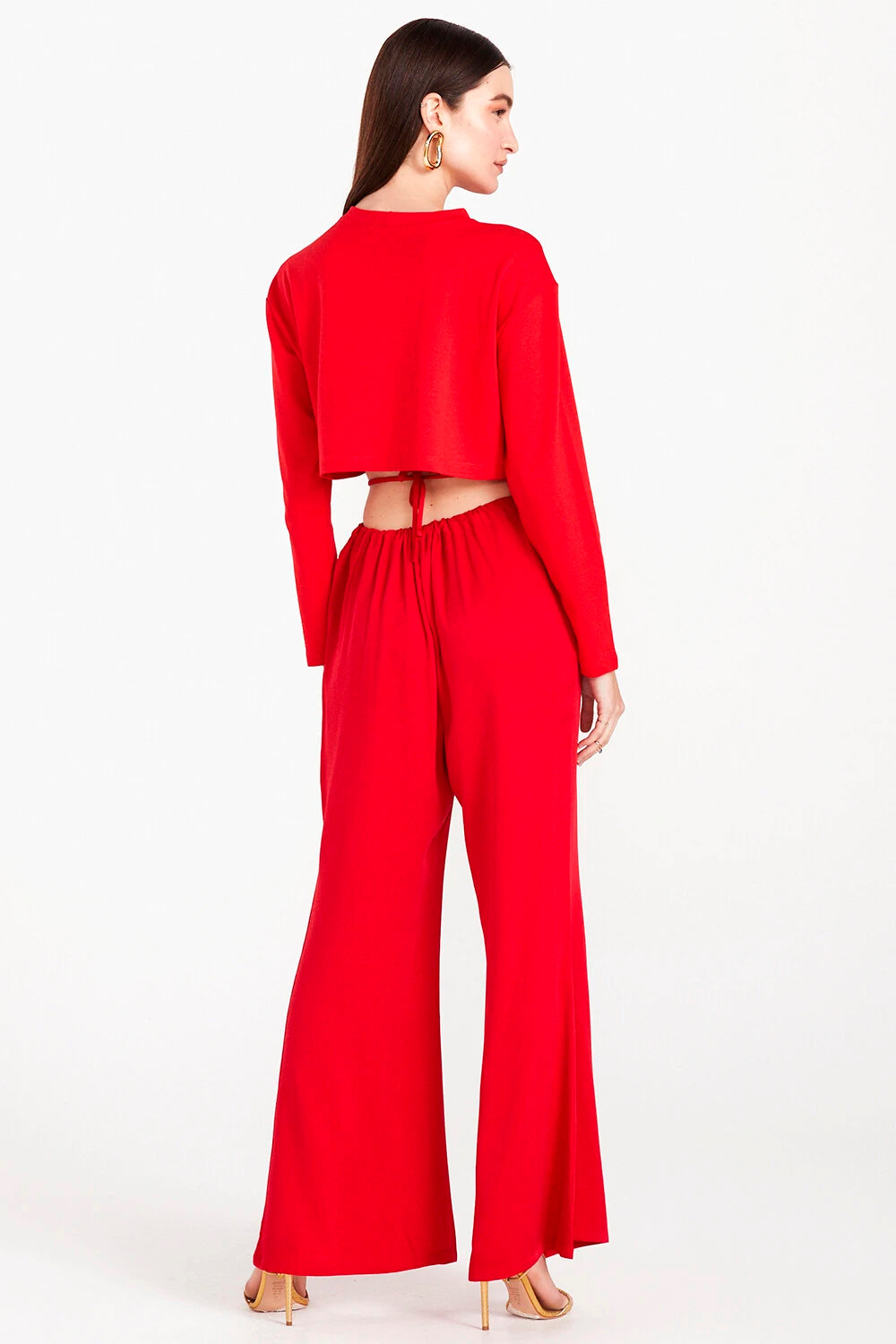 CALÇA RETA COM AMARRAÇÃO NO CÓS VERMELHO