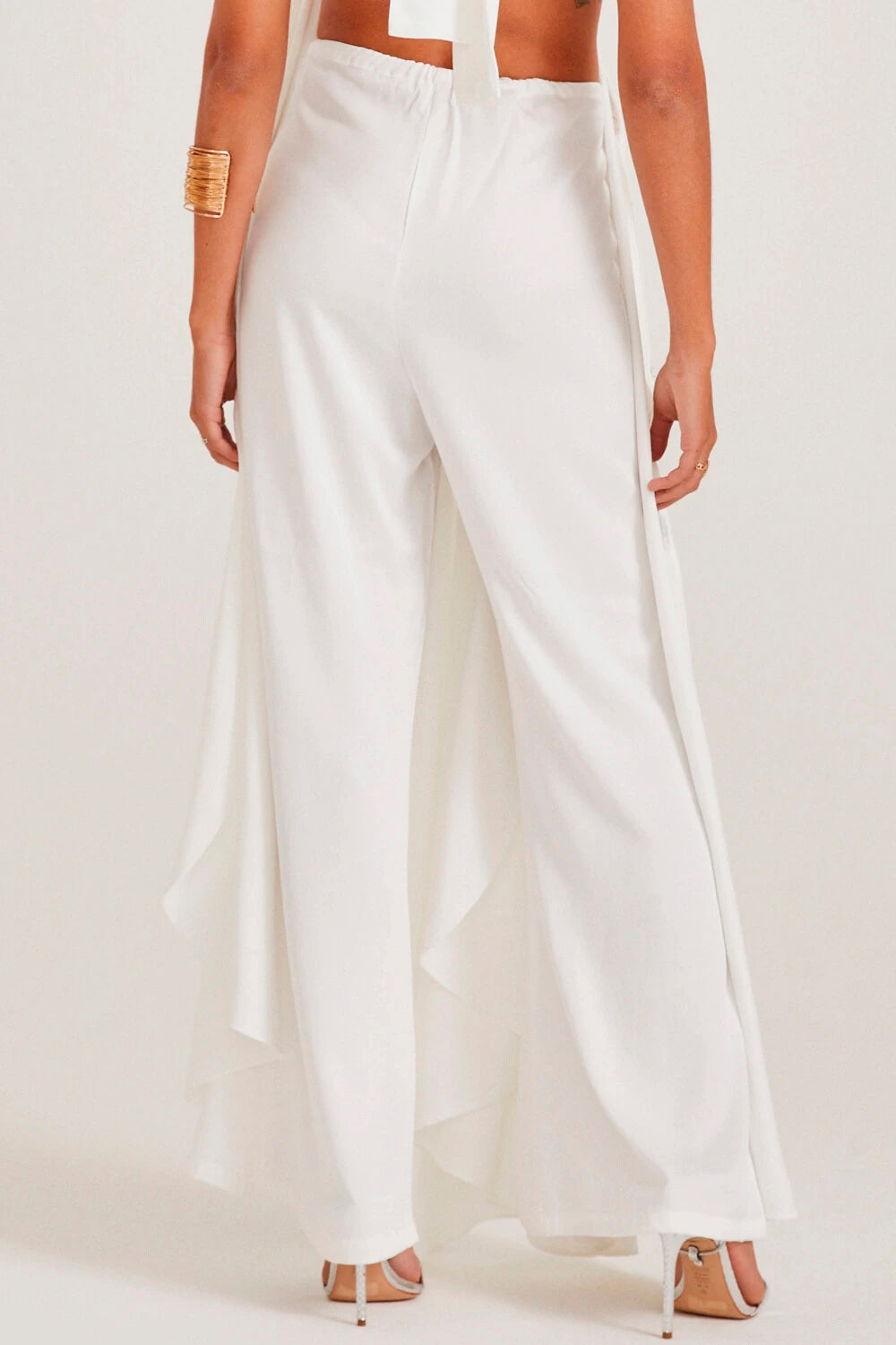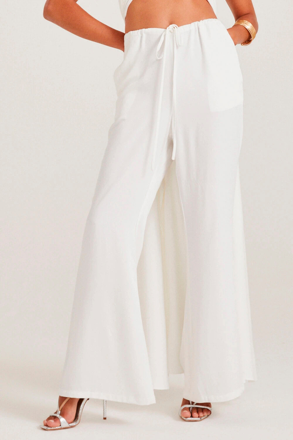 CALÇA RETA COM AMARRAÇÃO NO CÓS OFF WHITE