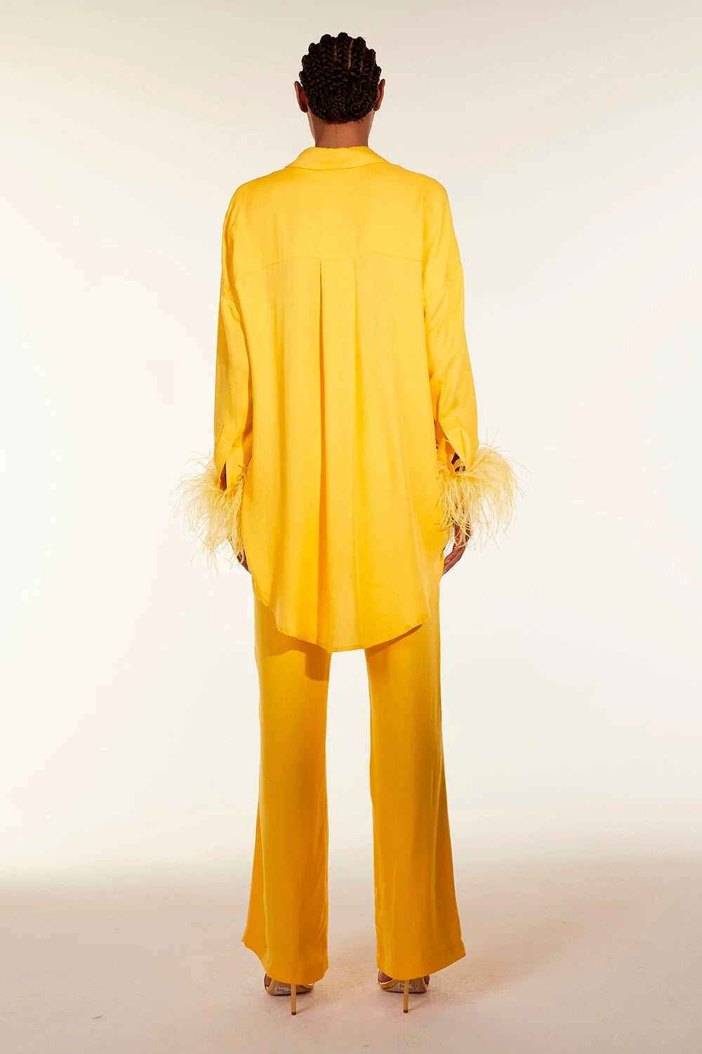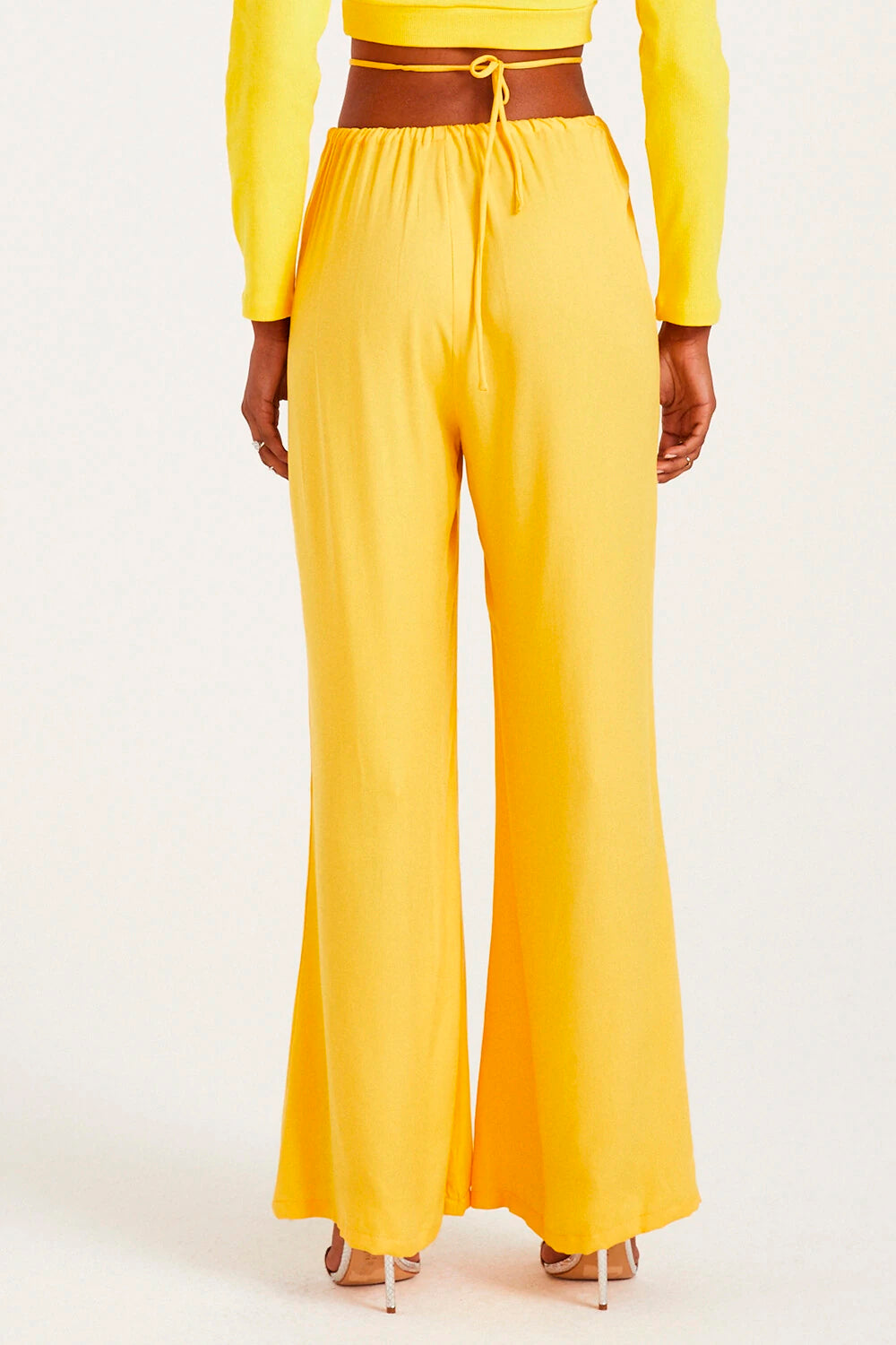 CALÇA RETA COM AMARRAÇÃO NO CÓS AMARELO