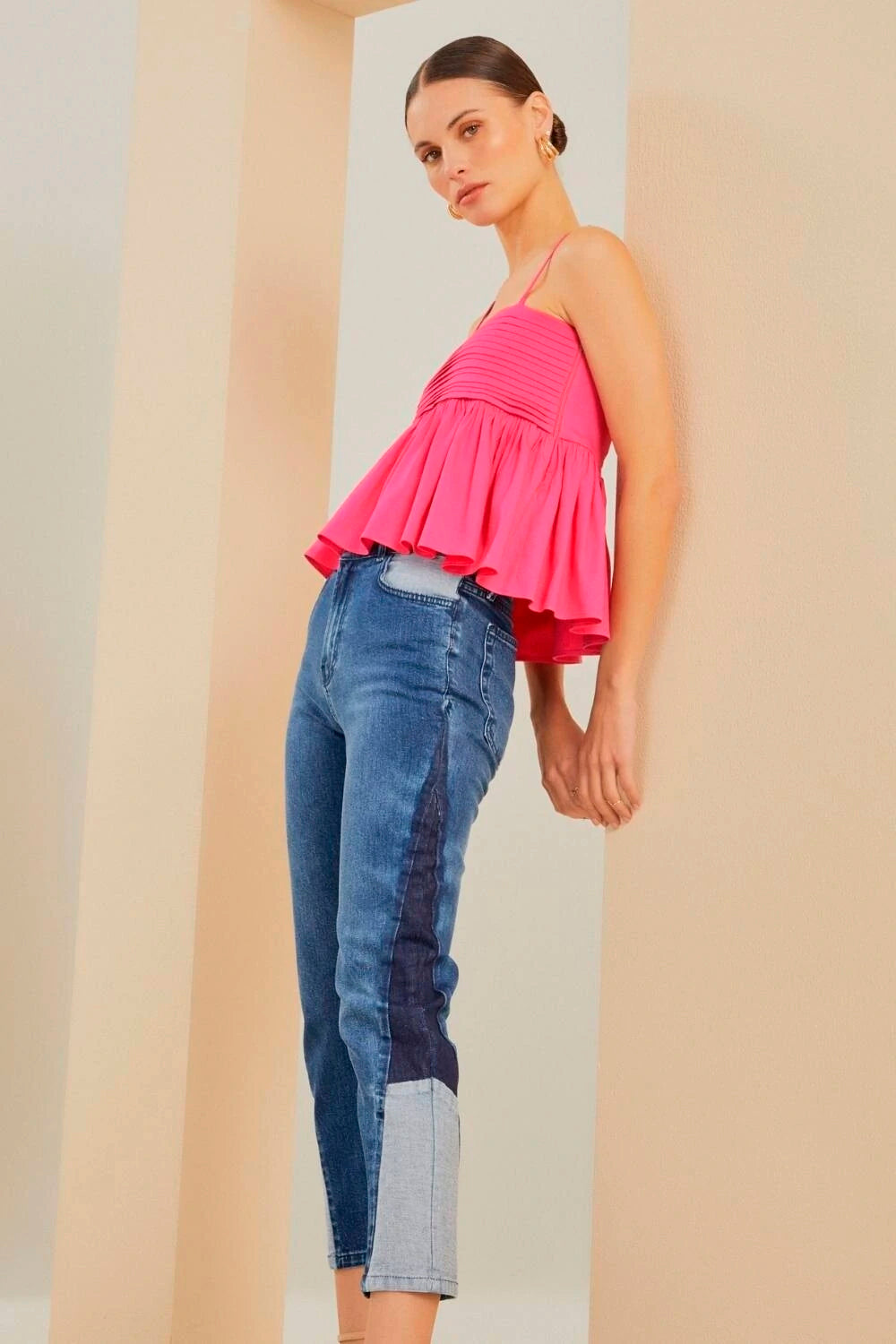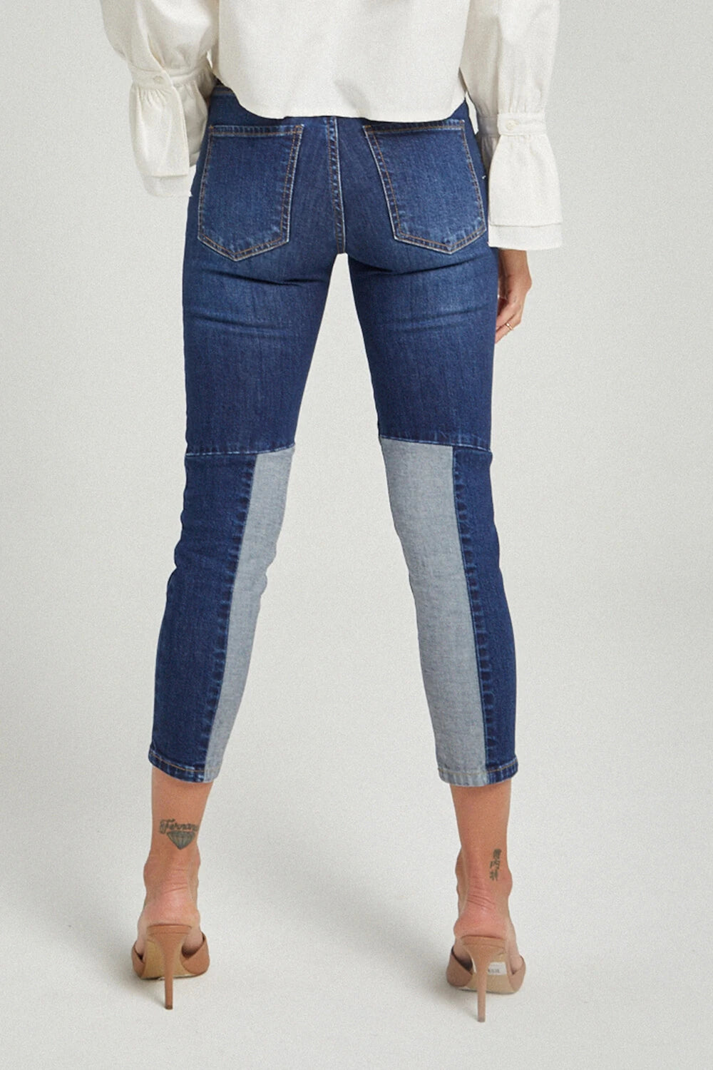 CALÇA SKINNY JEANS PATCHWORK AZUL JEANS