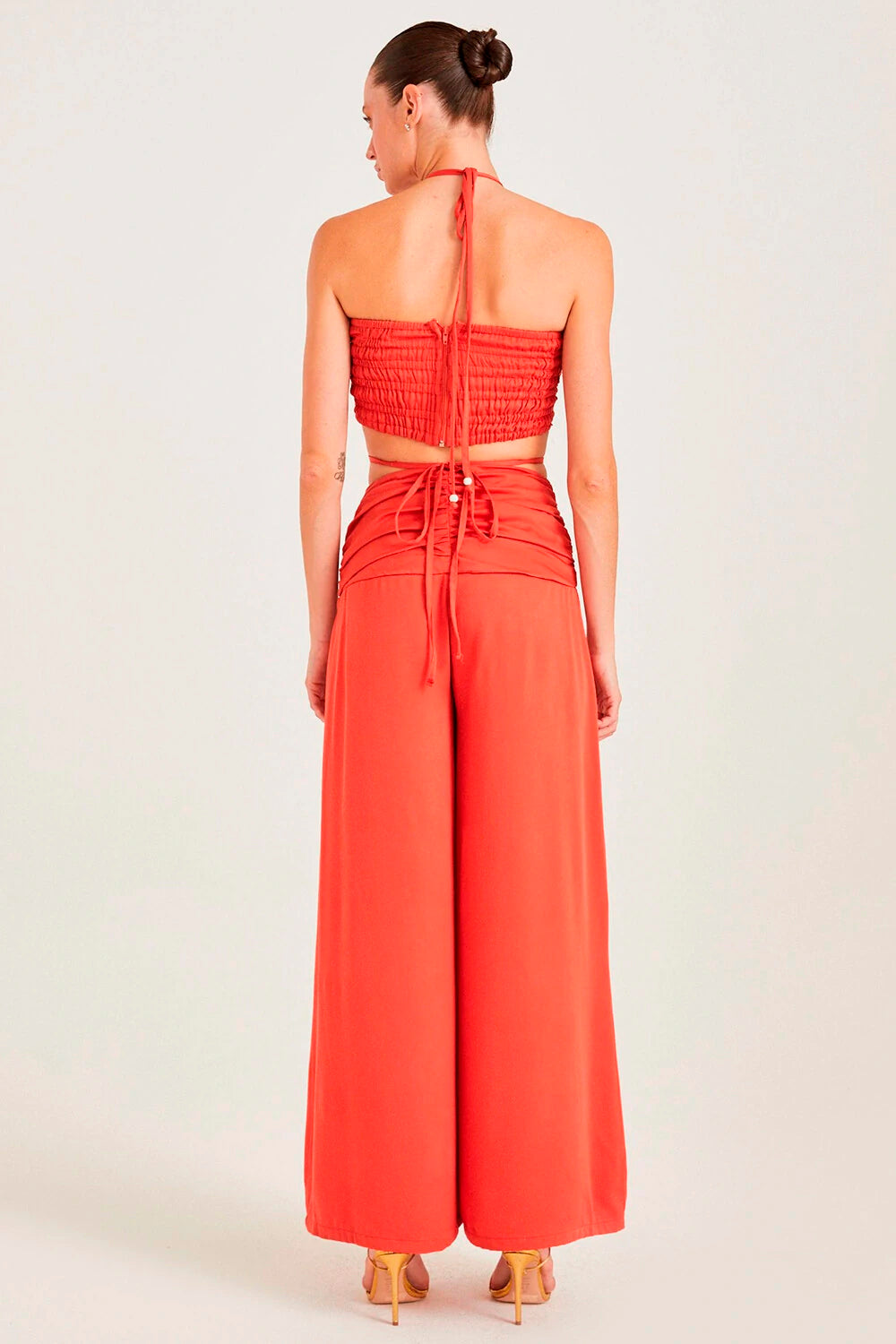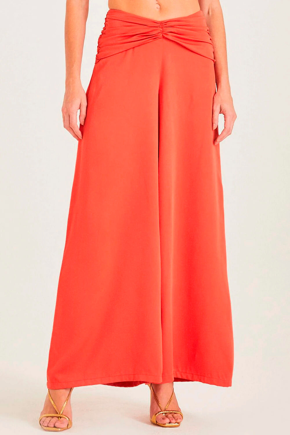 CALÇA PANTALONA COM COS FRANZIDO TERRACOTA