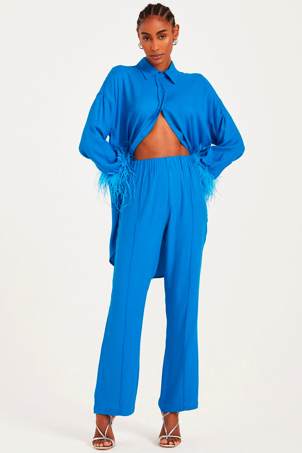 CALÇA RETA FRISO FRENTE AZUL ROYAL