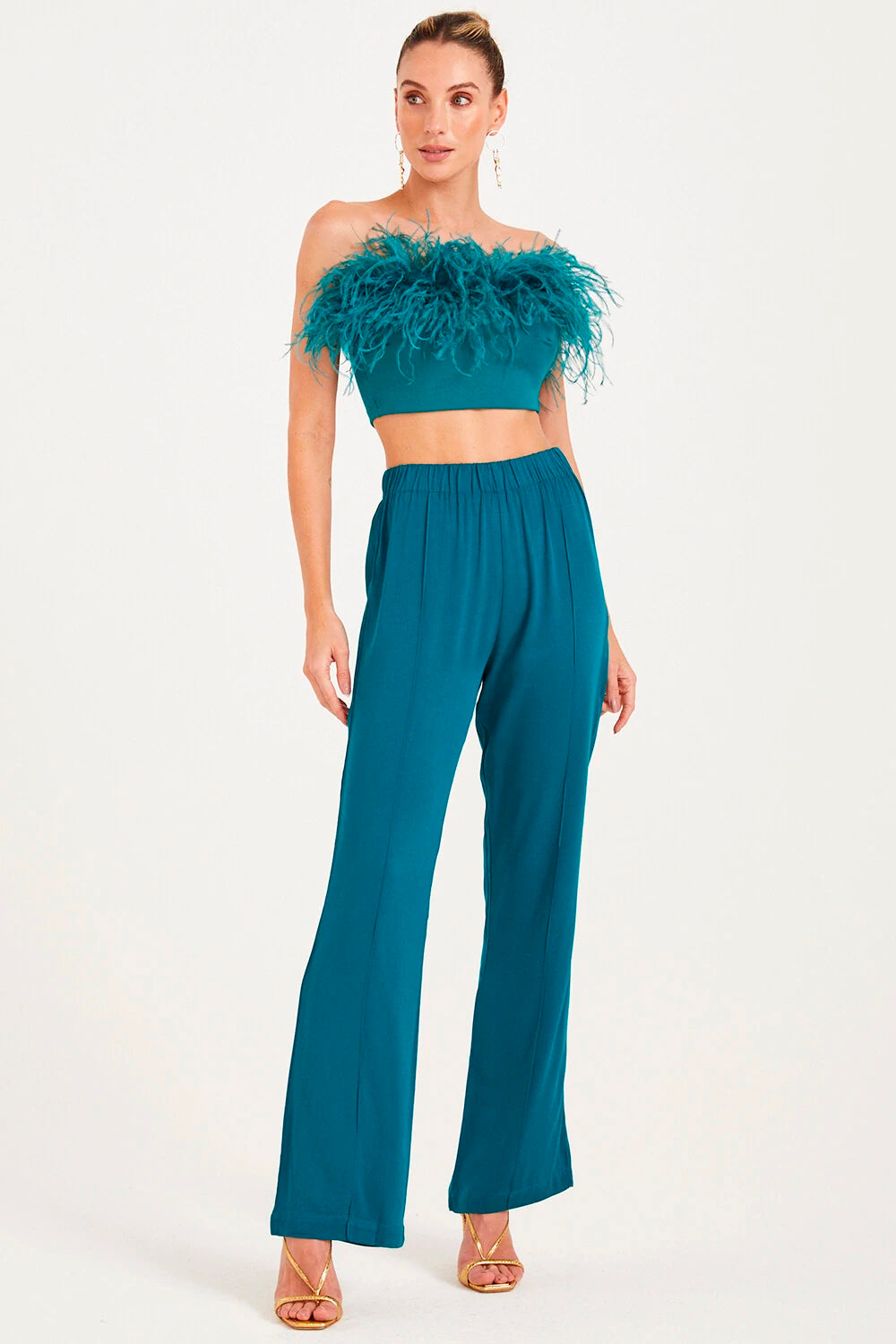 CALÇA RETA FRISO FRENTE VERDE ESMERALDA