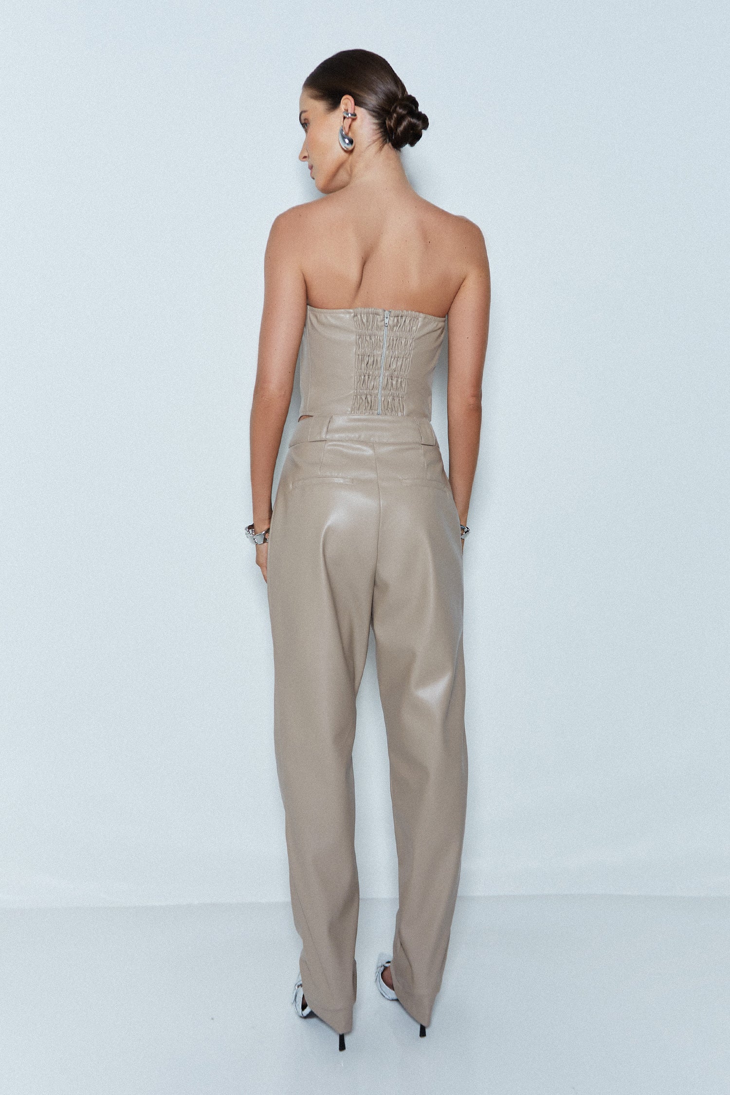 CALÇA RETA COM PREGAS EM POLIURETANO AREIA