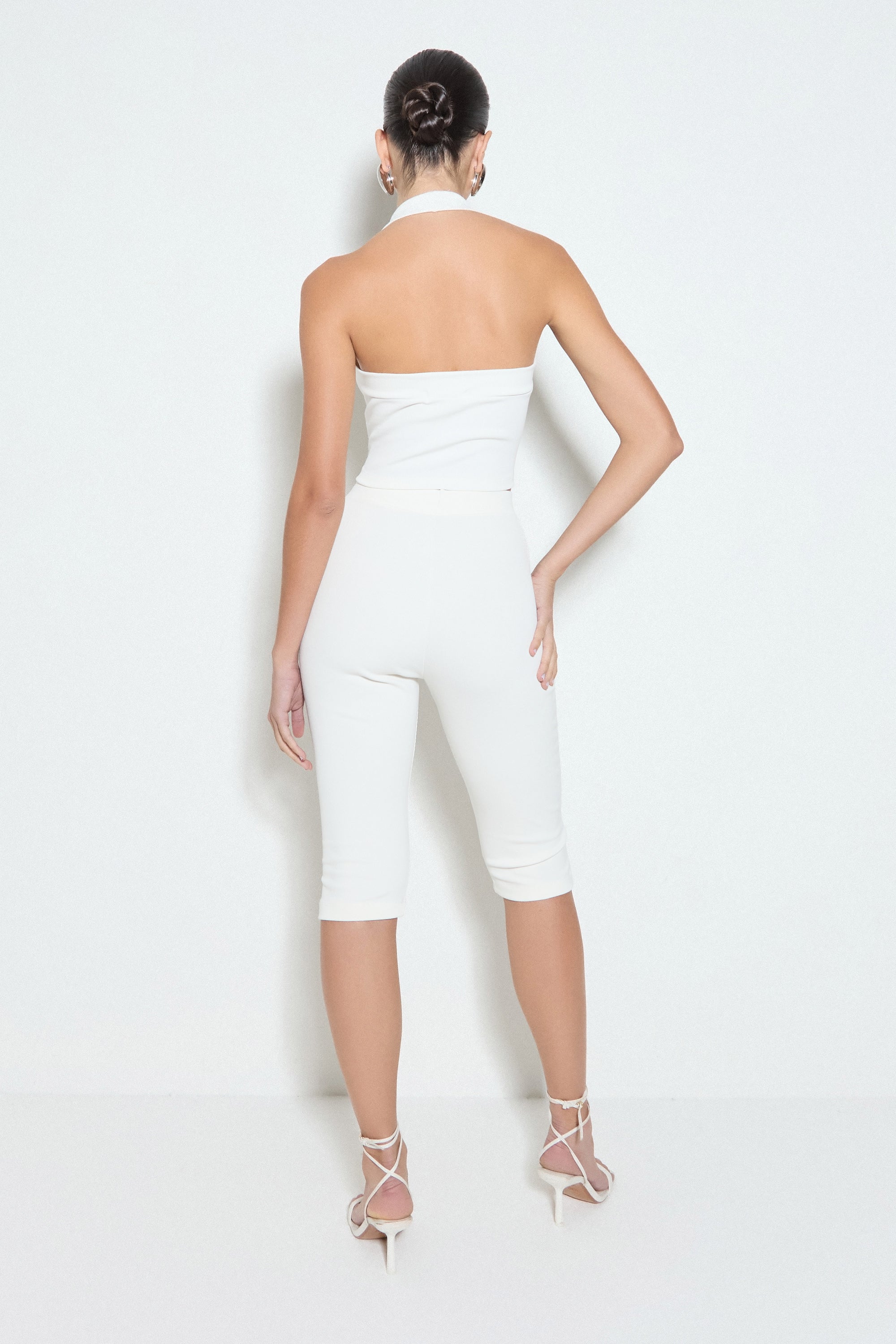 CALÇA CAPRI EM MALHA CANELADA OFF WHITE