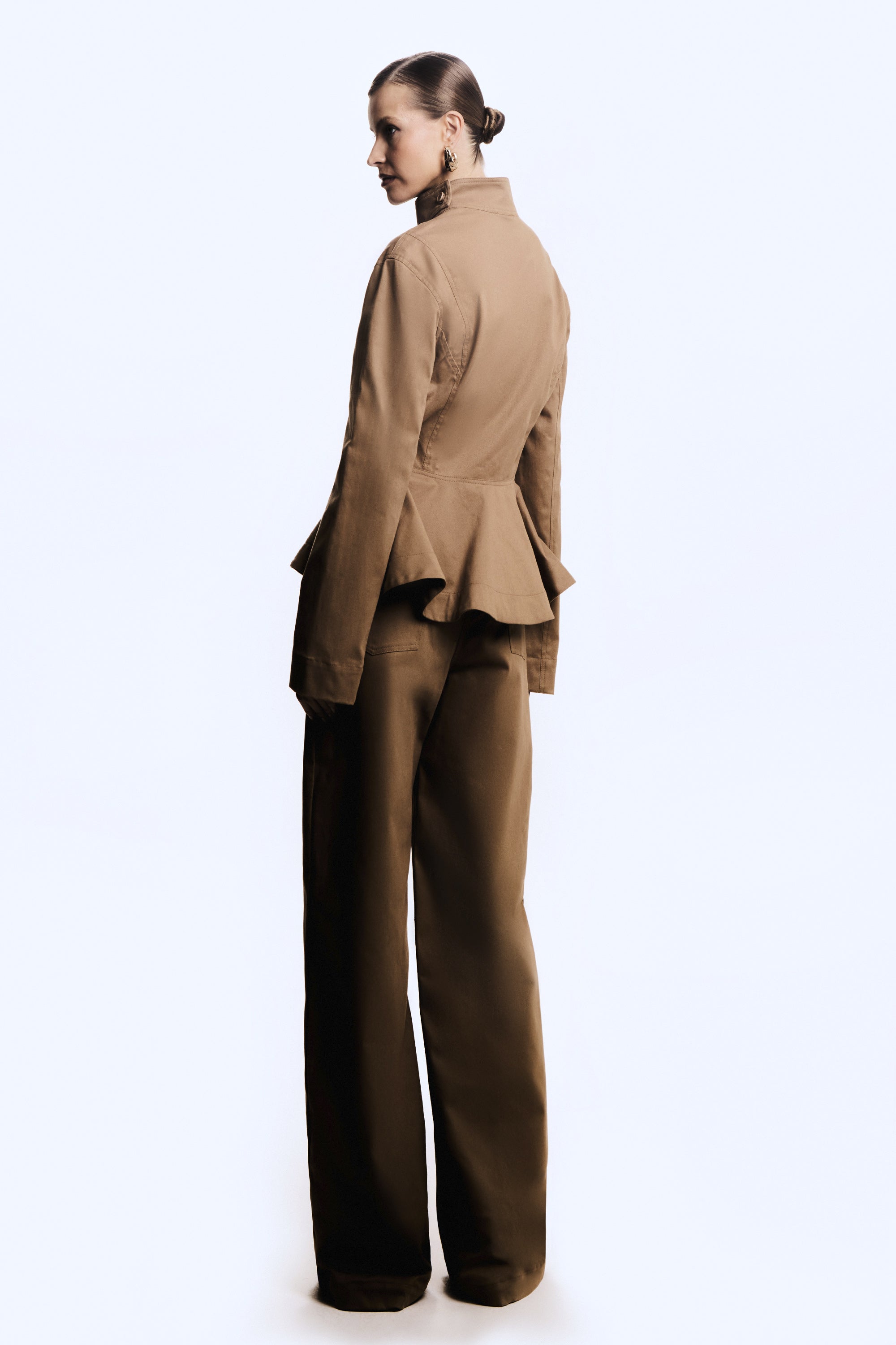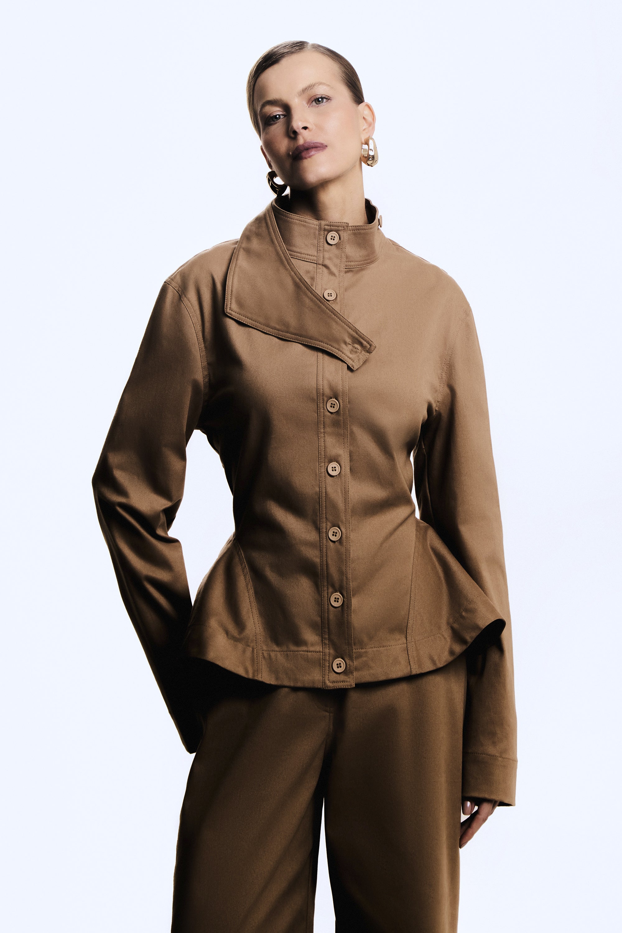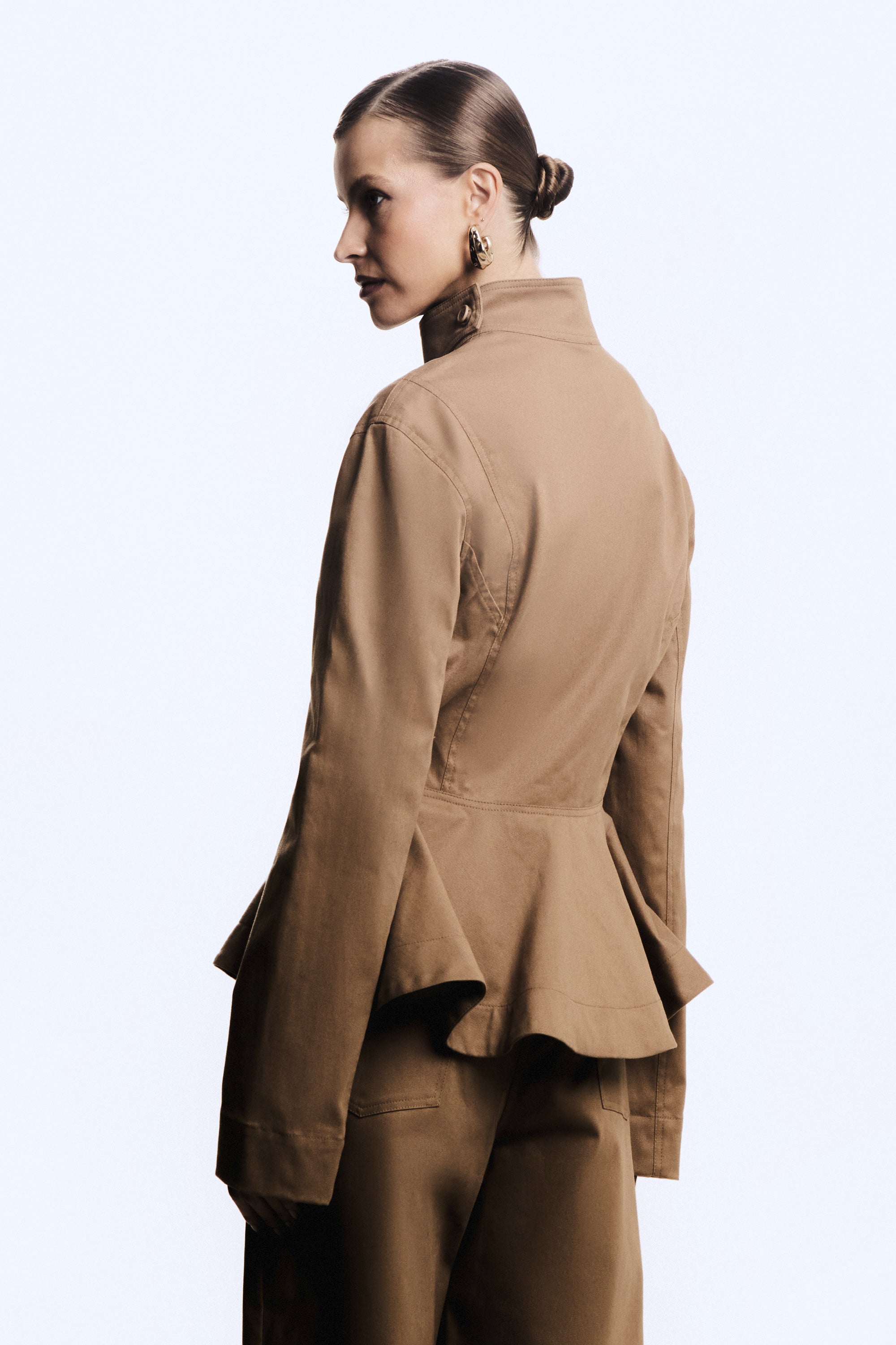 CASACO CURTO SOBREPOSICAO GOLA ACINTURADO BARRA AMPLA KAKI