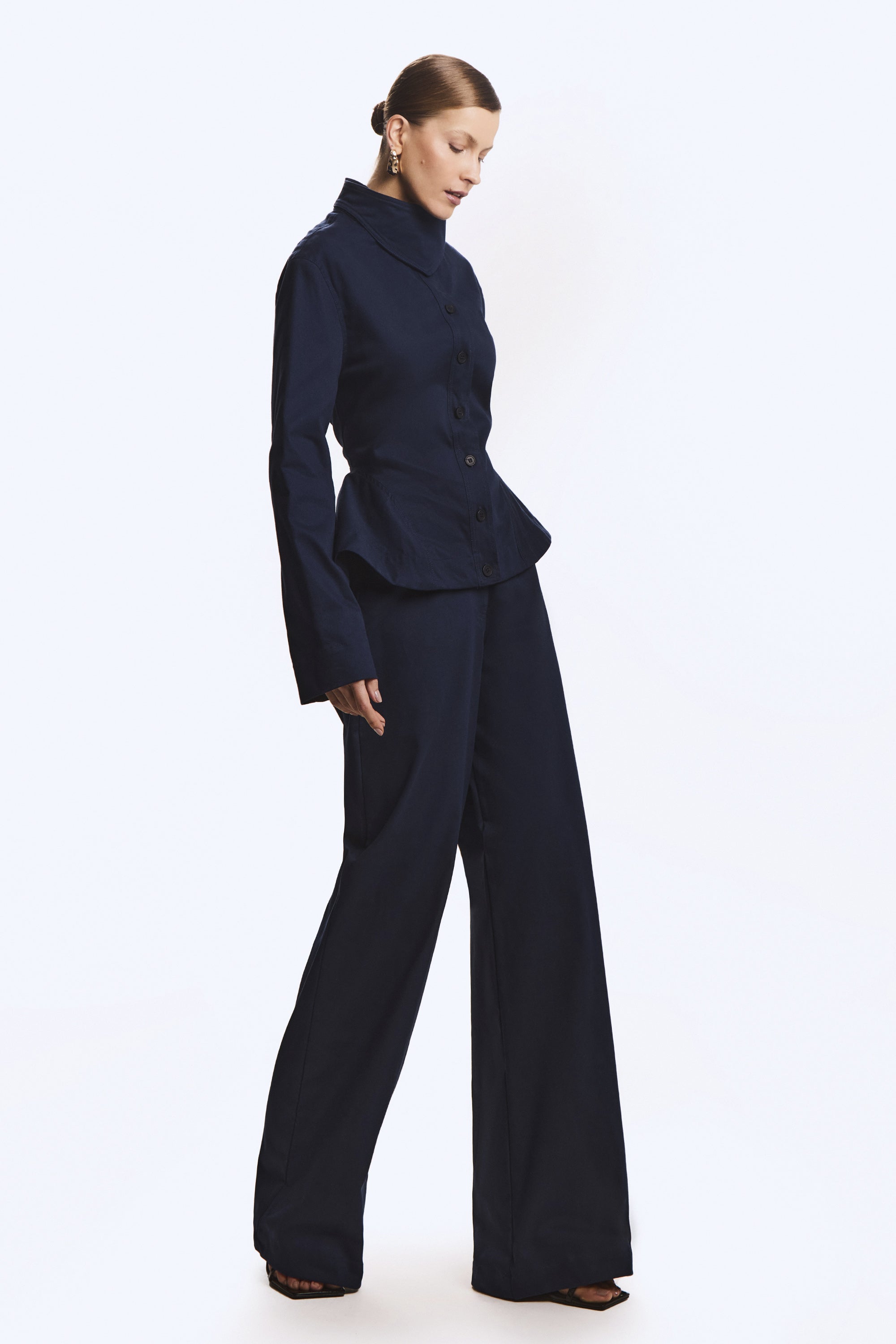 CALCA PANTALONA ESTRUTURADA BOLSO COSTAS AZUL MARINHO ESCURO
