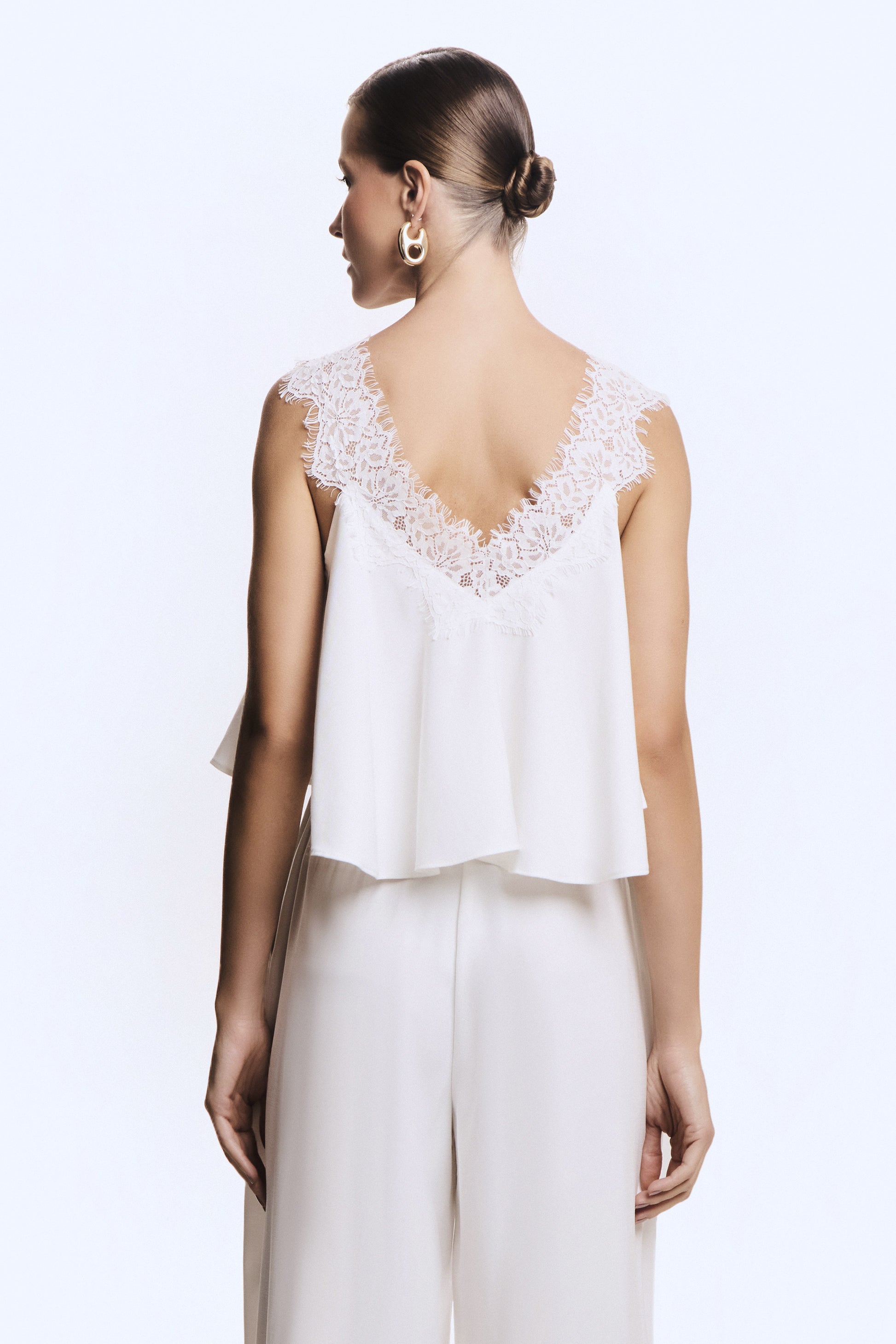 BLUSA DE ALCA COM DECOTE E ALCA EM RENDA COM FLUIDEZ OFF WHITE