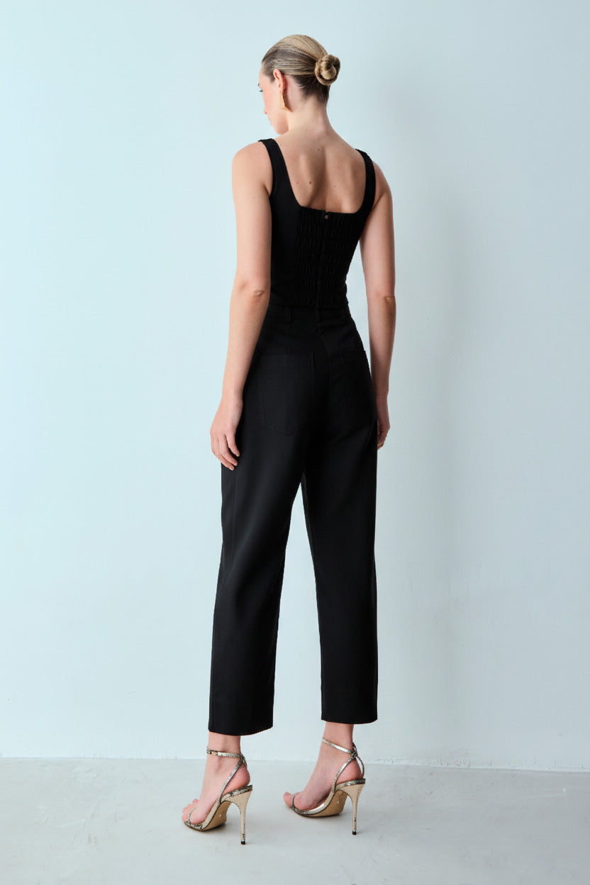BLUSA DE ALCA RECORTE BUSTO E PESPONTOS FRONTAL PRETO