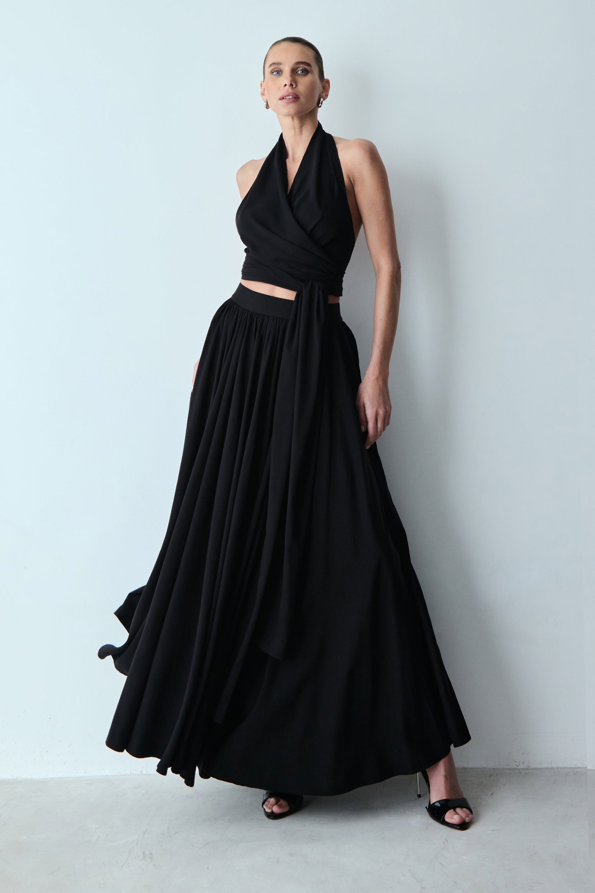 BLUSA FRENTE UNICA COM TRANSPASSE E AMARRACAO PRETO
