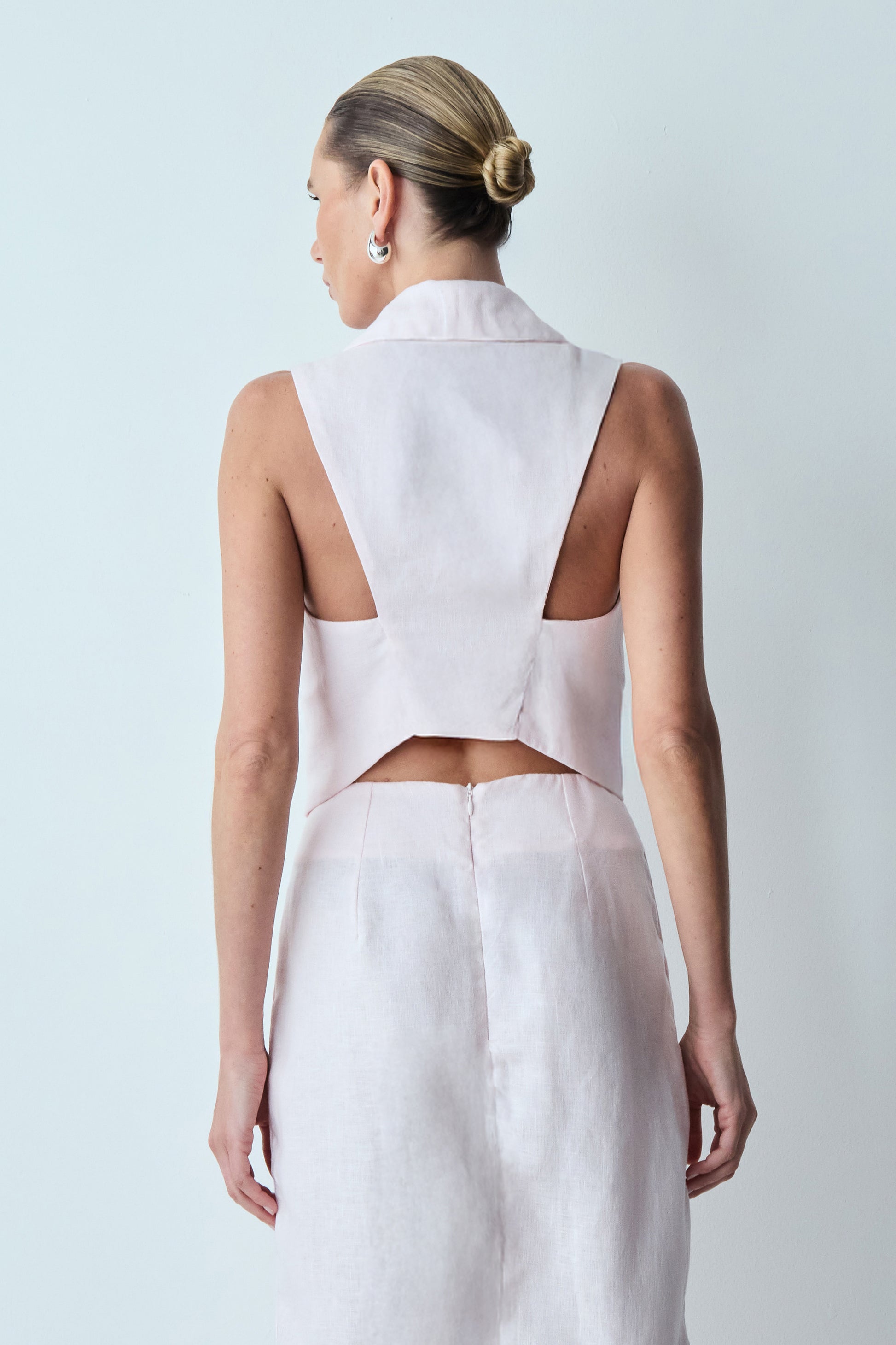 BLUSA MANGA CURTA COLETE COM RECORTE BARRA E COSTAS ROSA CELESTIAL