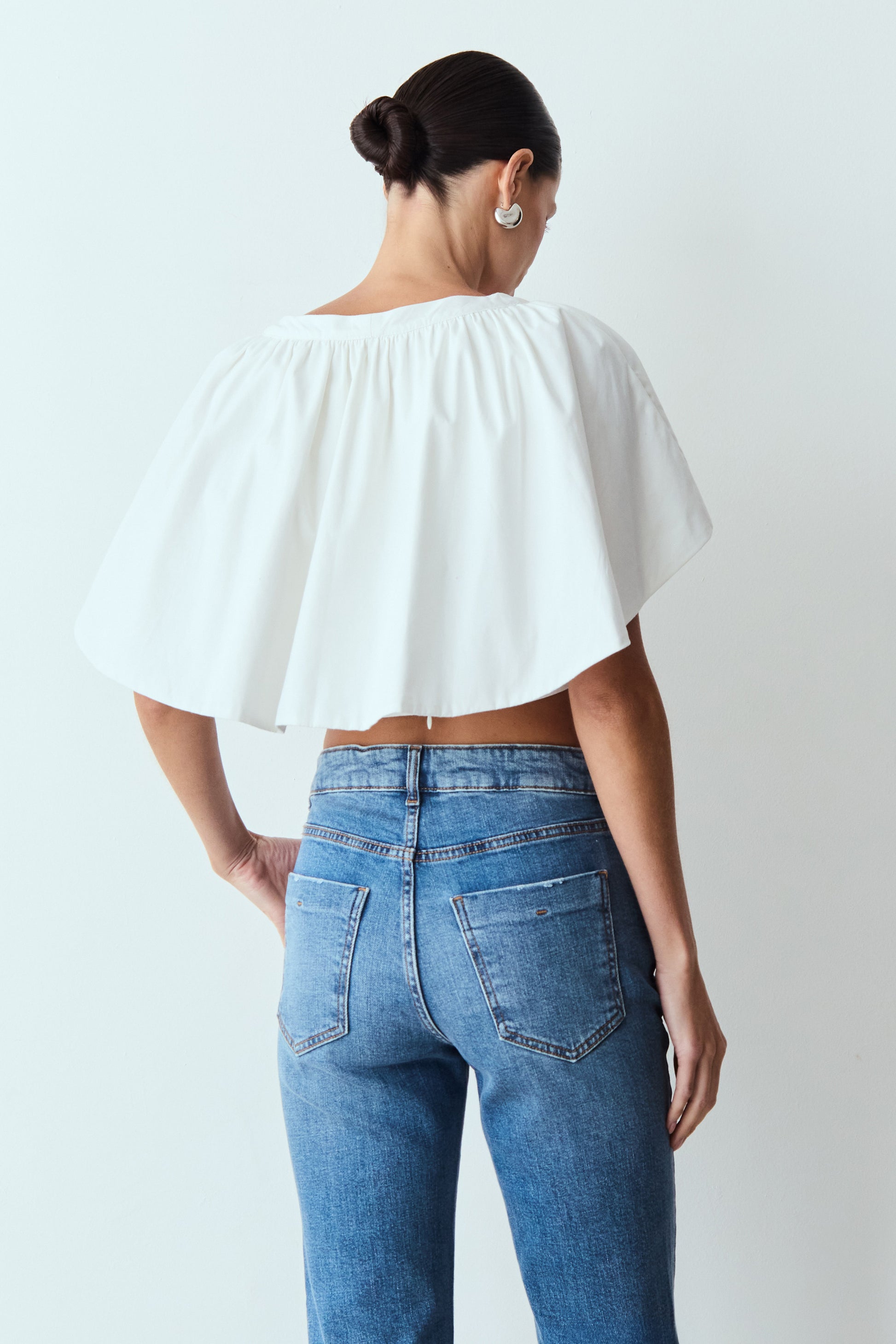 BLUSA MANGA CURTA COM SOBREPOSICAO E EFEITO BUFANTE OFF WHITE
