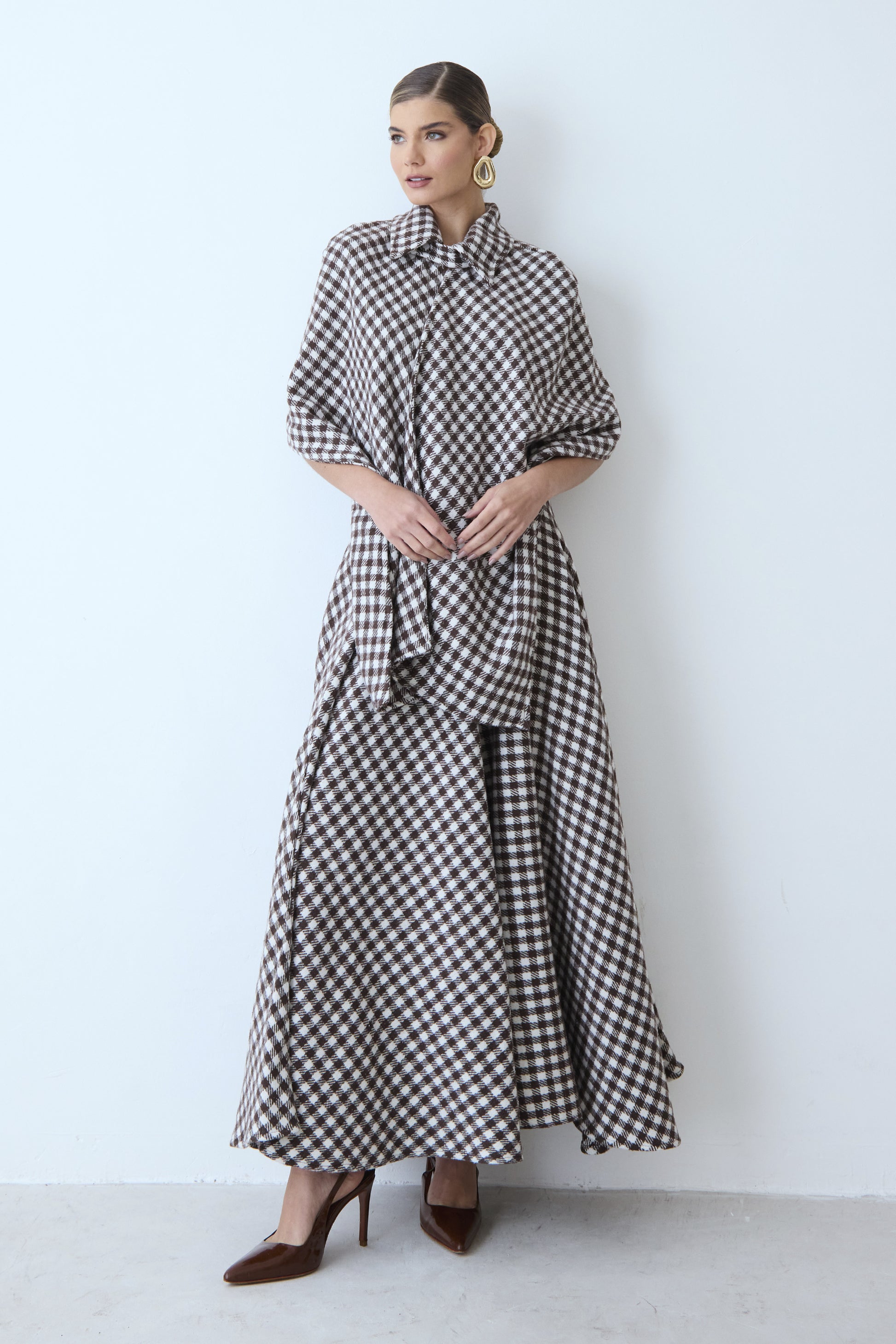 BLUSA MANGA CURTA PONCHO COM GOLA TRADICIONAL TRANSPASSADO MARROM