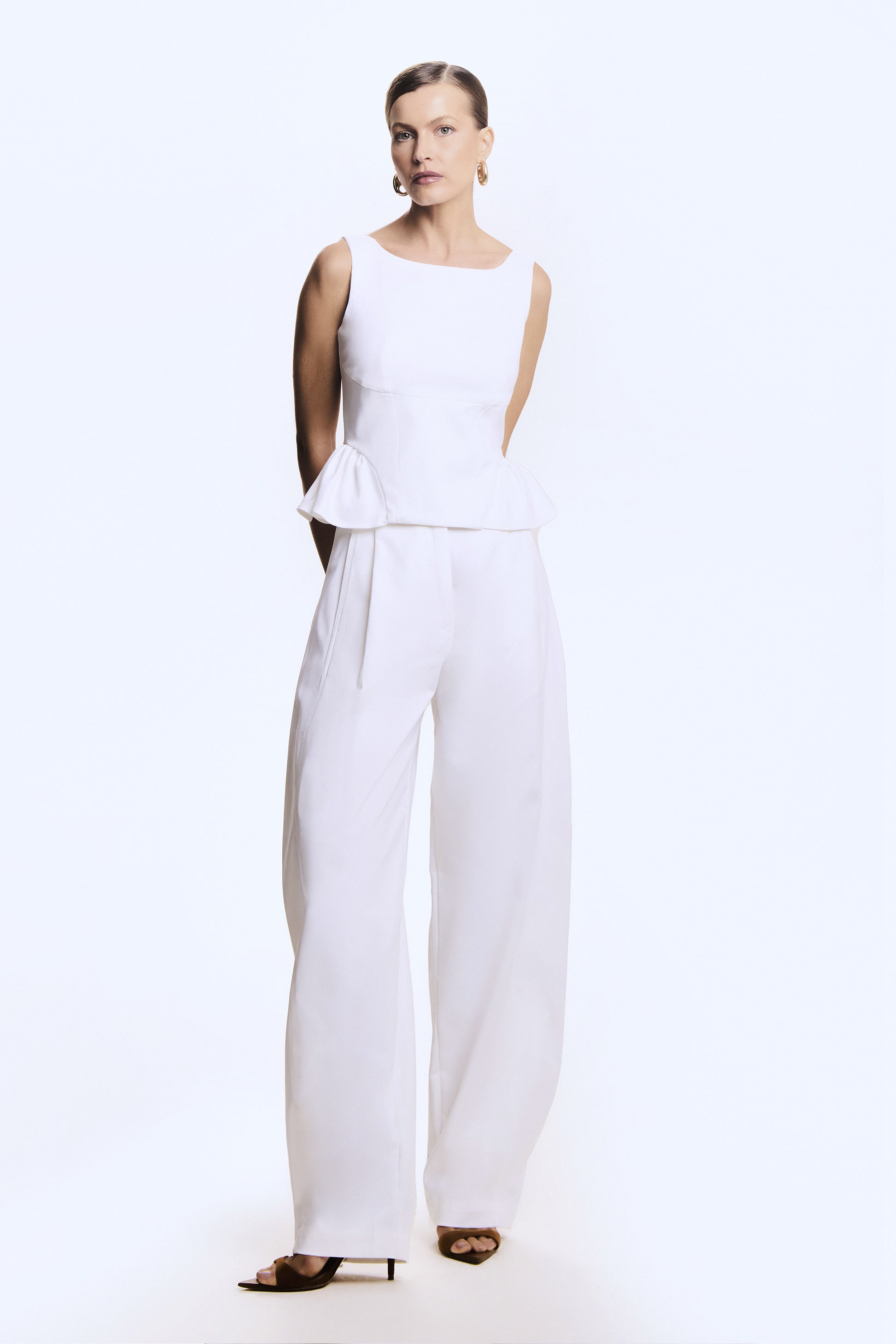 CALCA BAGGY ESTRUTURADA BOTAO LATERAL OFF WHITE