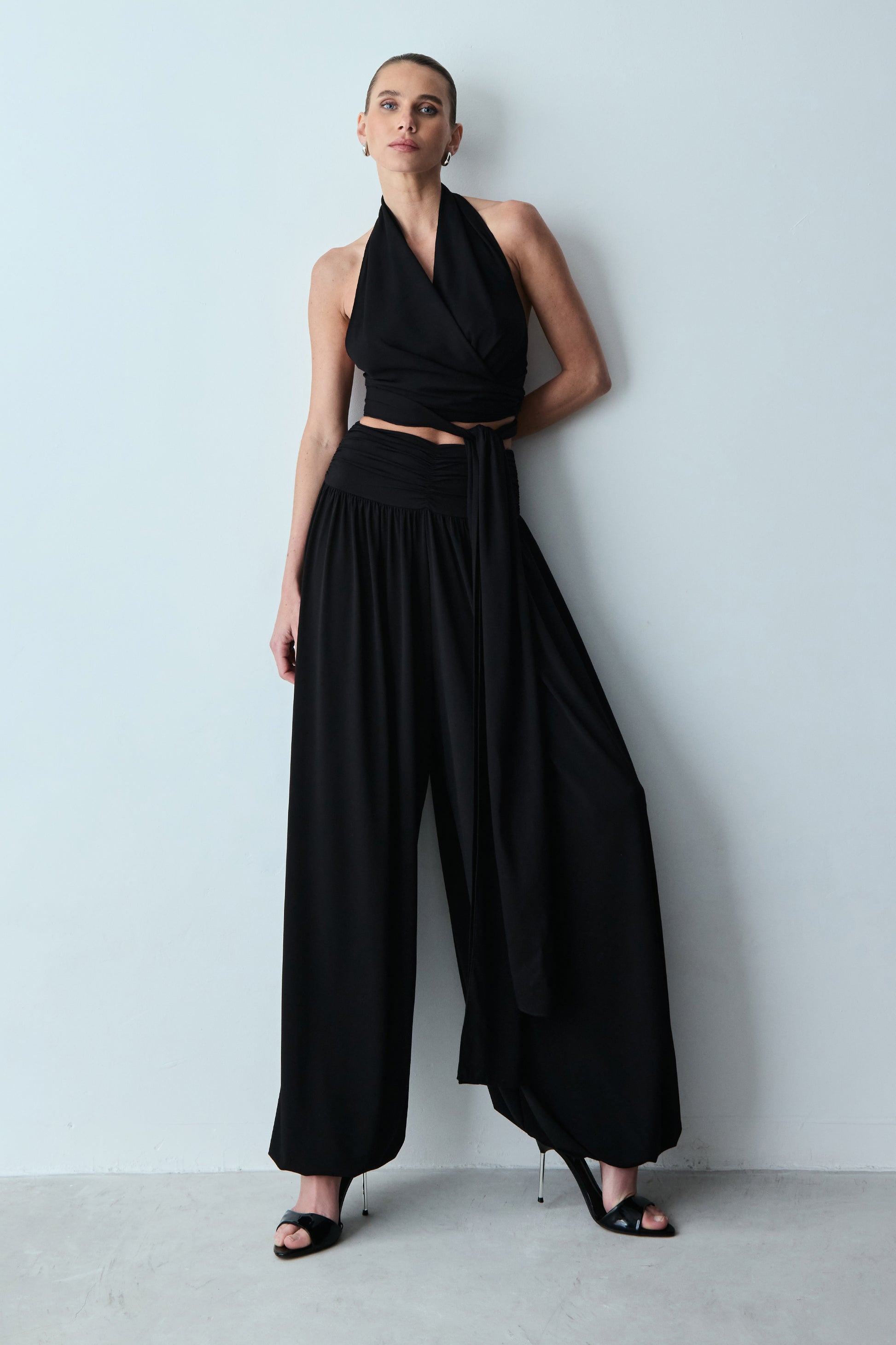 CALCA JOGGER FLUIDA COM COS FRANZIDO BARRA AJUSTADA PRETO