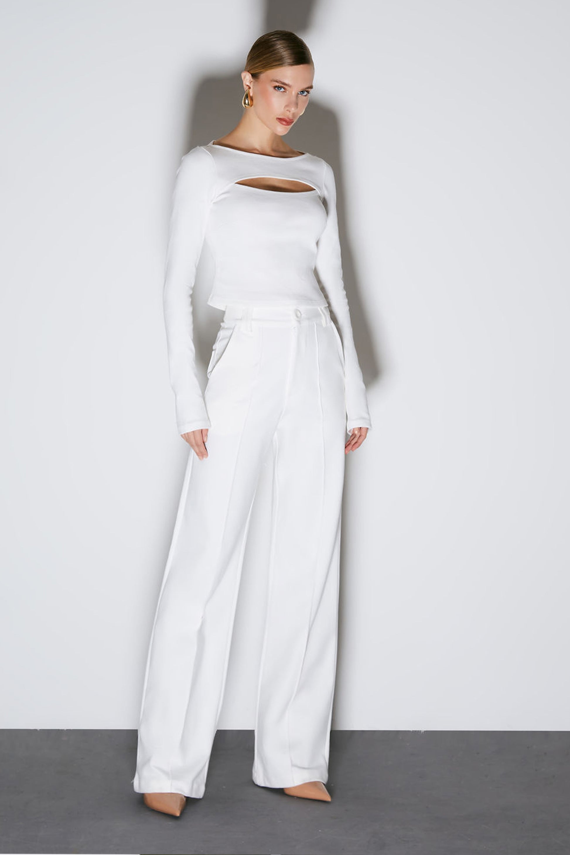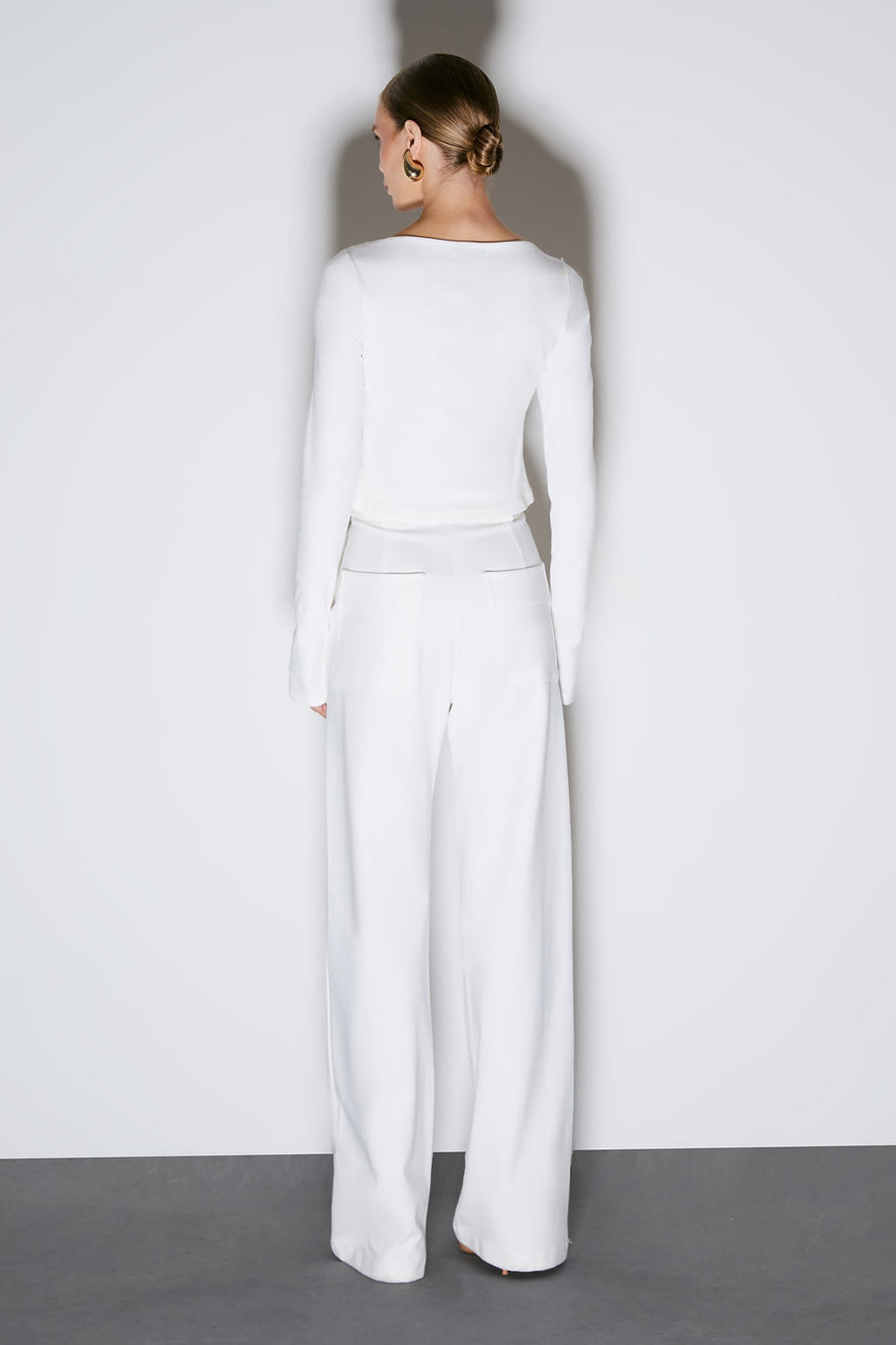 CALÇA PANTALONA COM FRISOS OFF WHITE