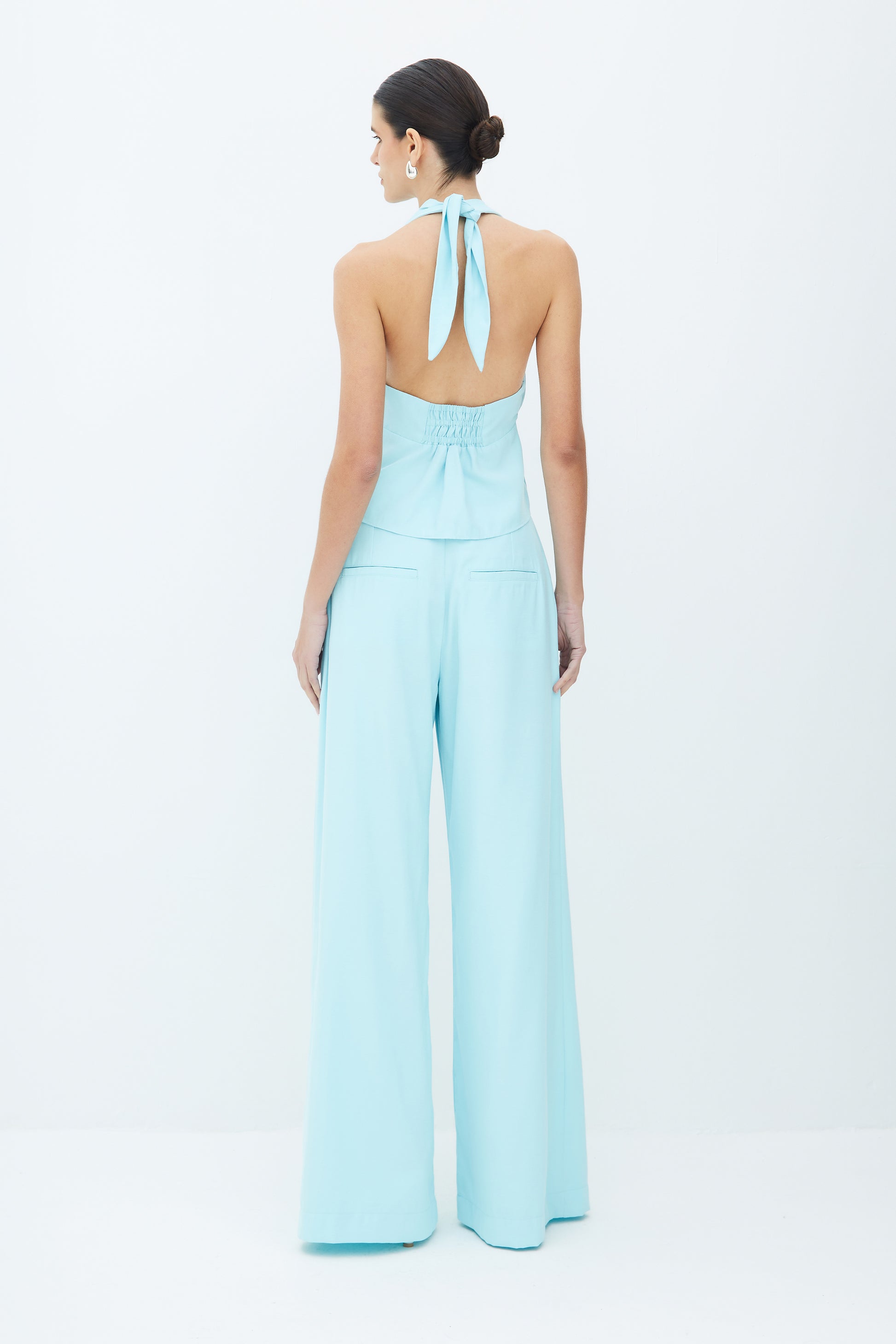 CALCA PANTALONA FLUIDA COM DUAS PREGAS FRENTE AZUL FRESH