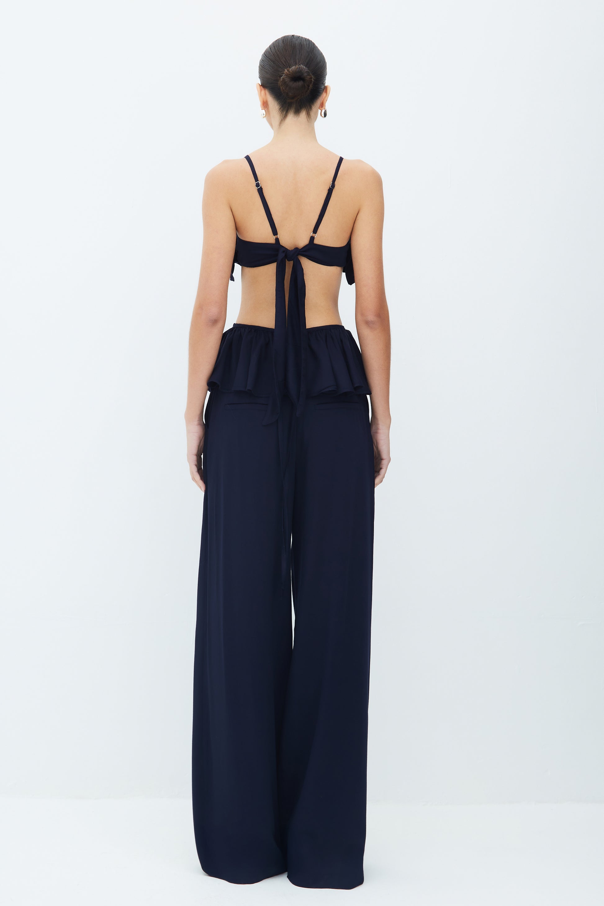 CALCA RETA AMPLA COM FRISO FRONTAL AZUL MARINHO