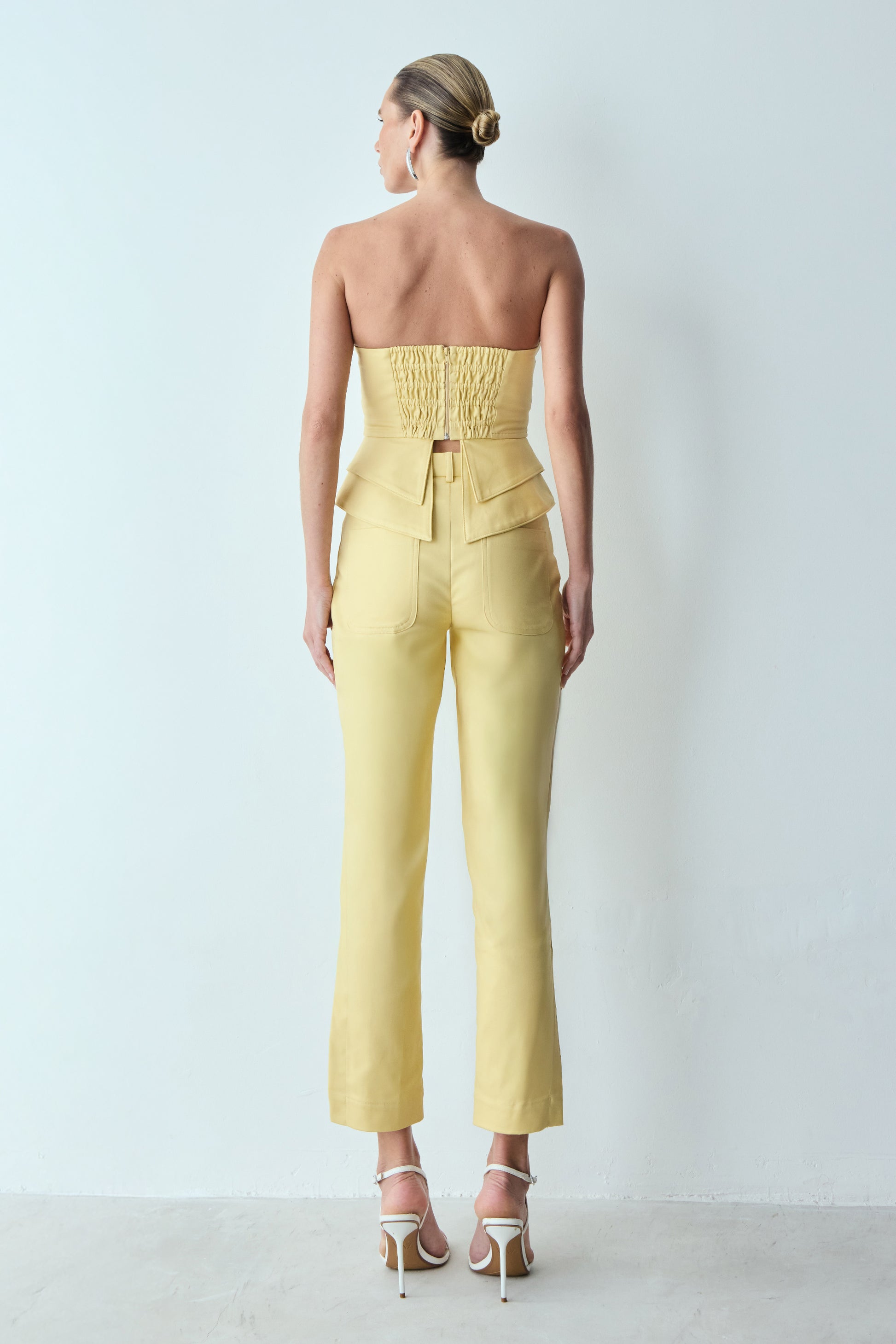 CALCA RETA BOLSOS FRONTAIS E ABERTURA BARRA AMARELO MANTEIGA
