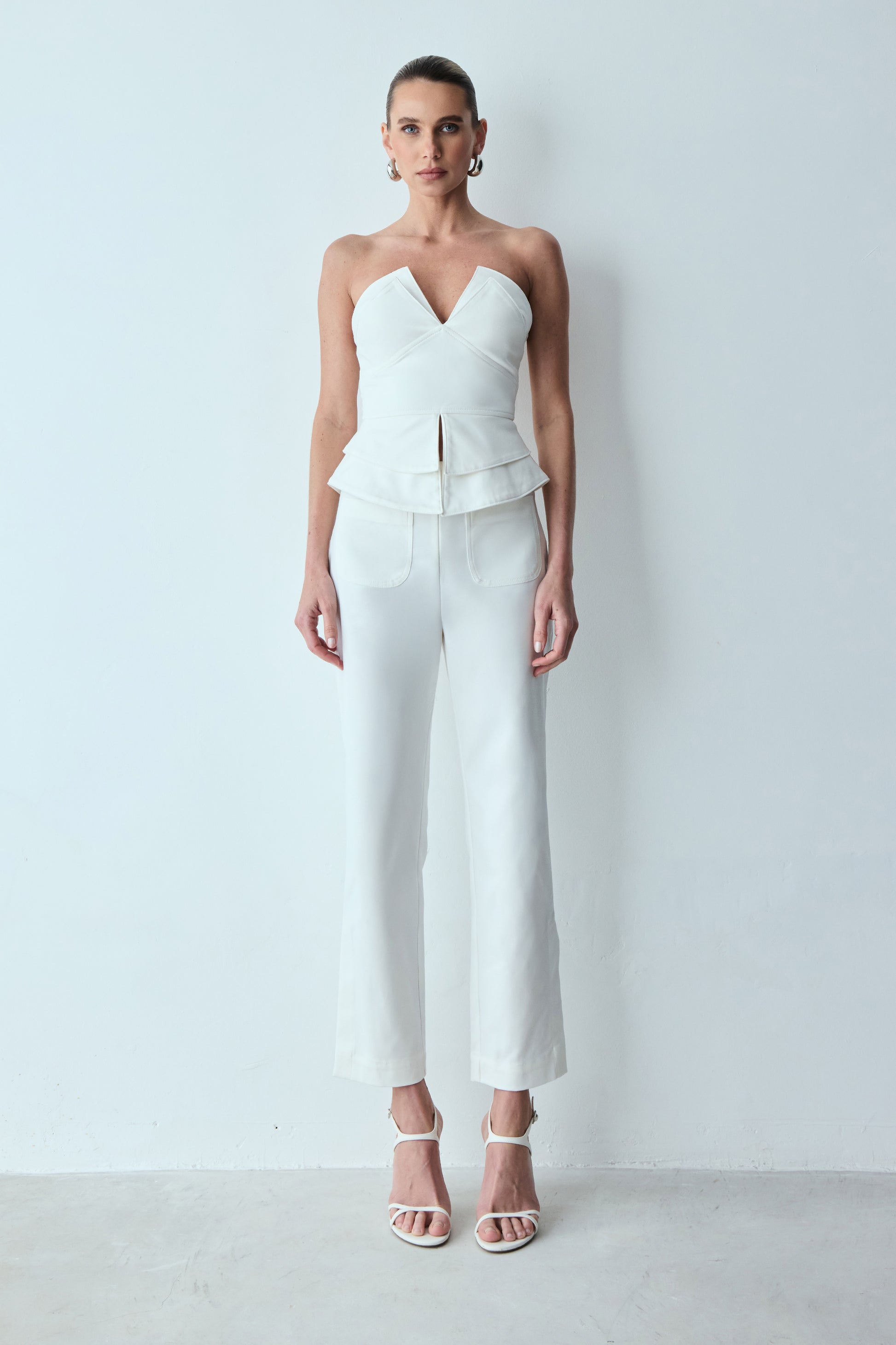CALCA RETA BOLSOS FRONTAIS E ABERTURA BARRA OFF WHITE
