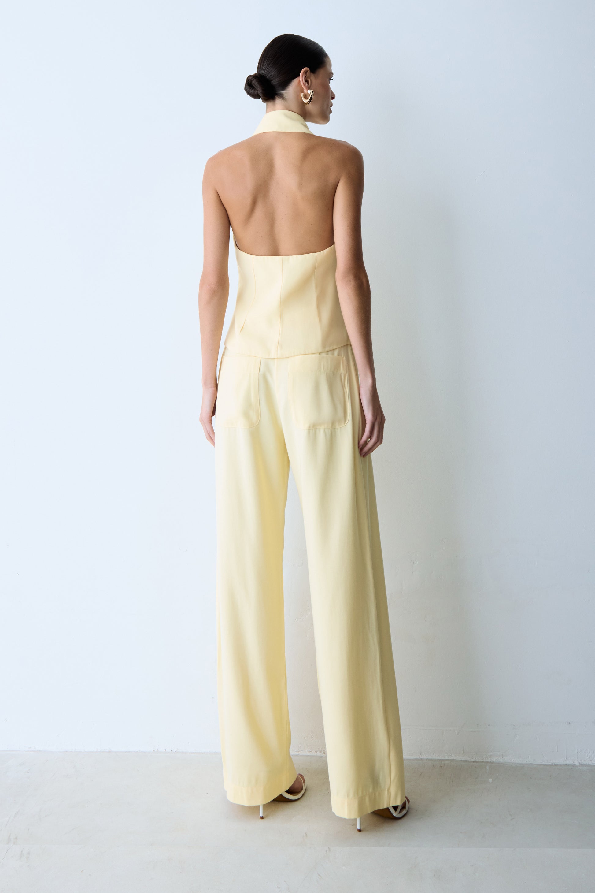 CALCA RETA COM SOBREPOSICAO AMARELO MANTEIGA CLARO