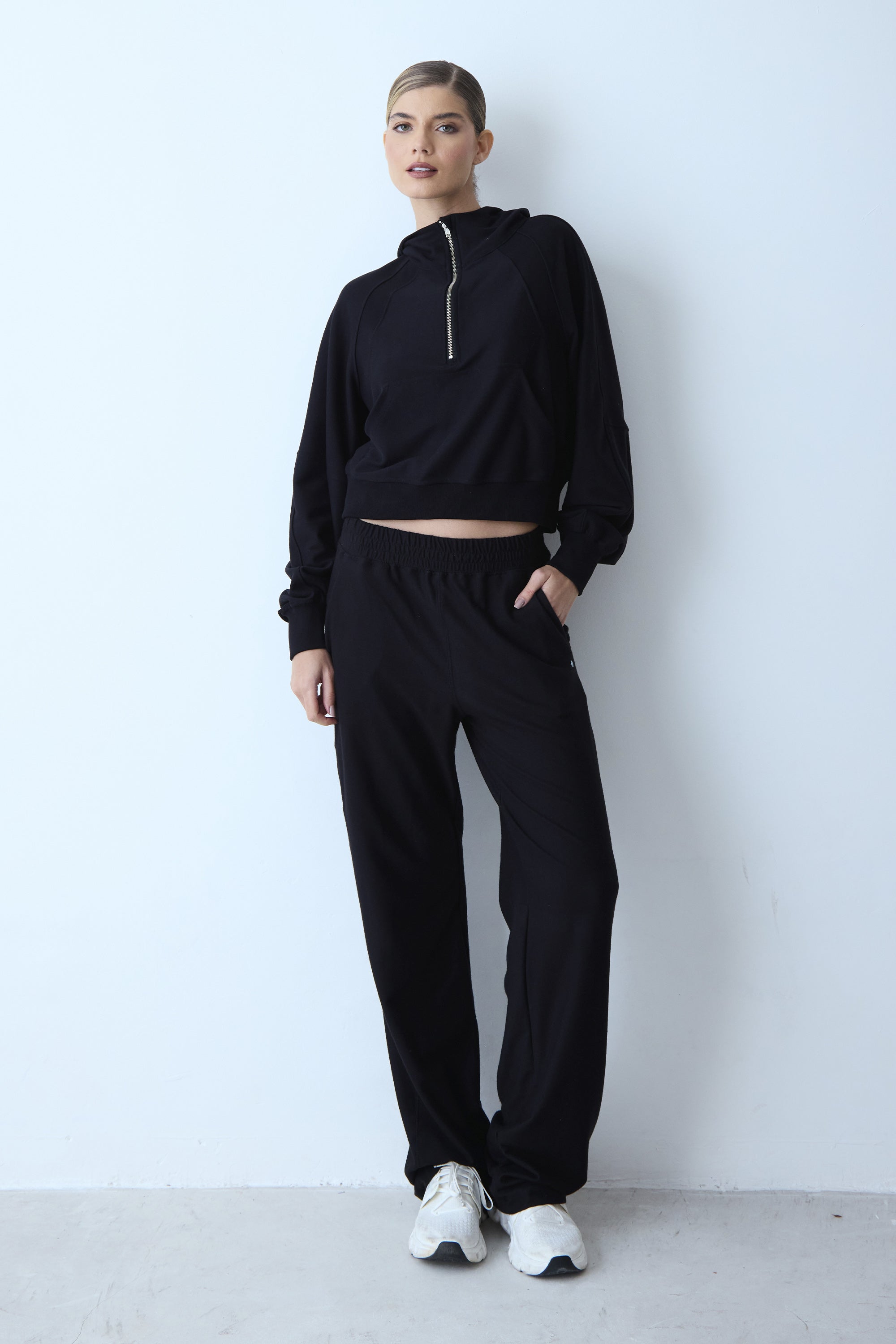 CALCA RETA DE MOLETOM COM ELASTICO NA CINTURA PRETO