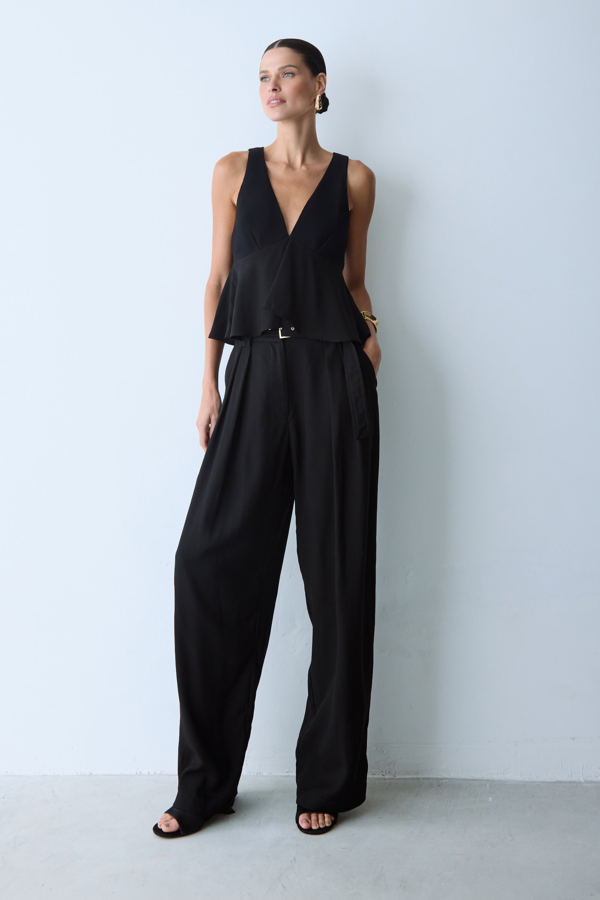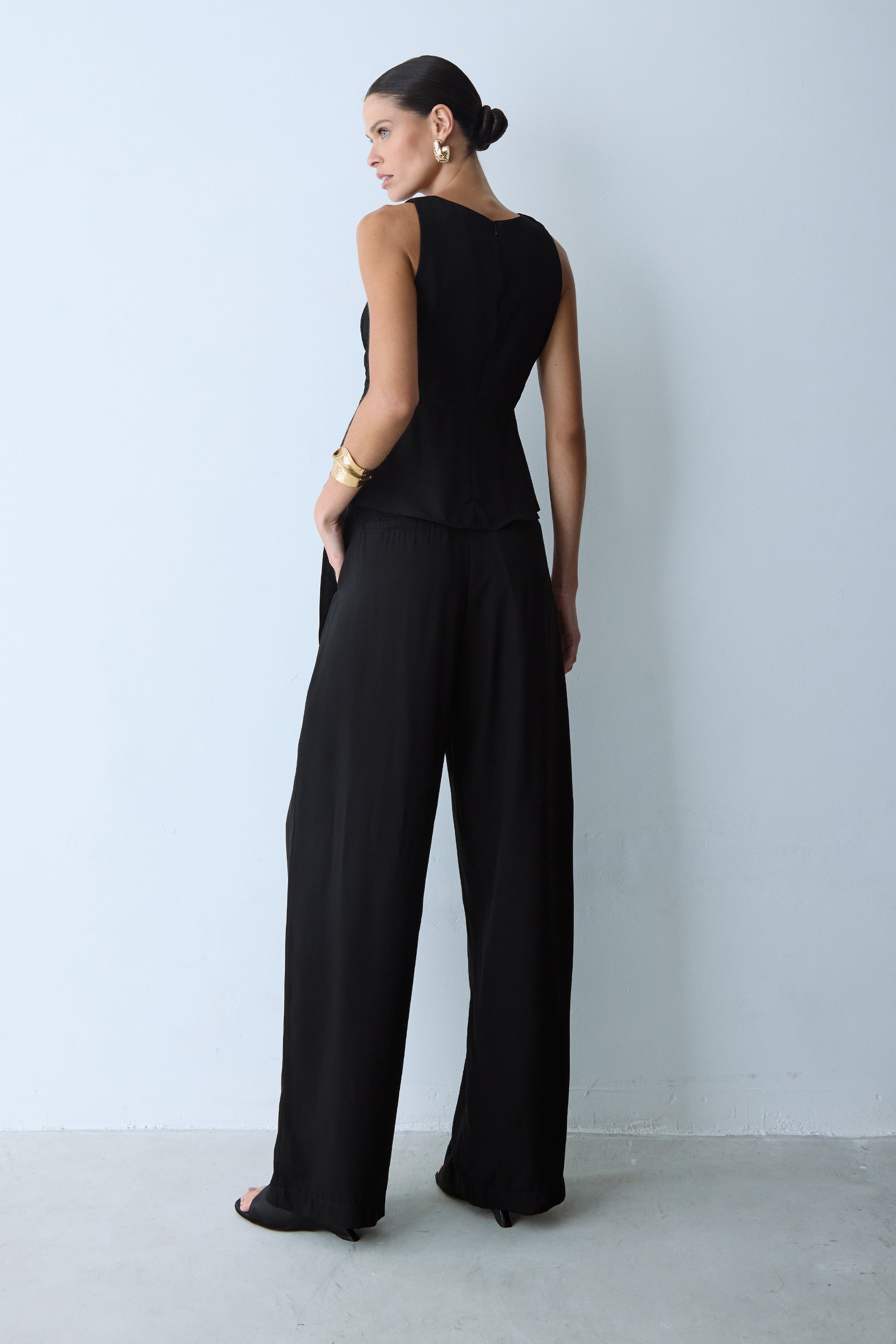 CALCA RETA PREGAS FRENTE E CINTO COM FIVELA PRETO