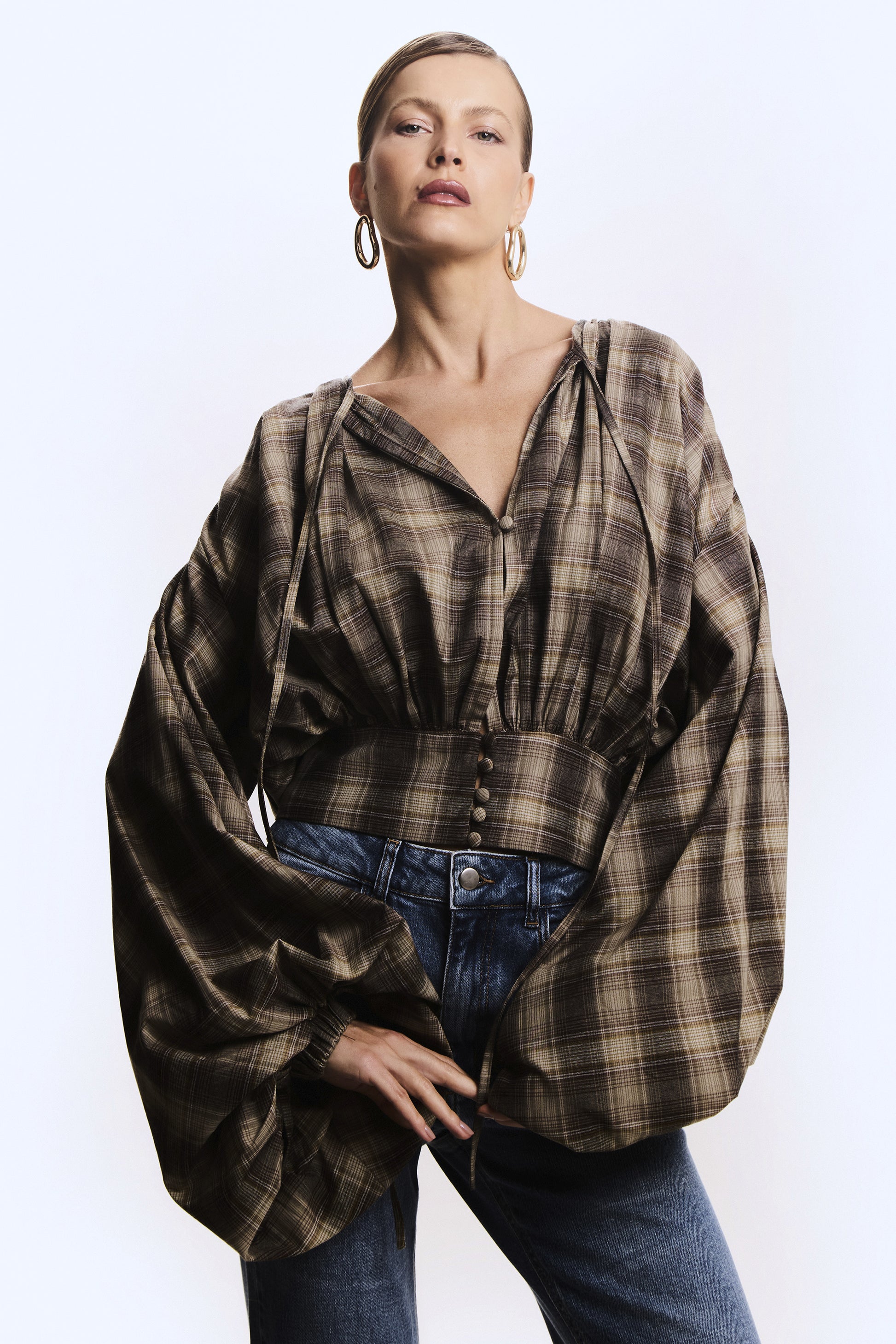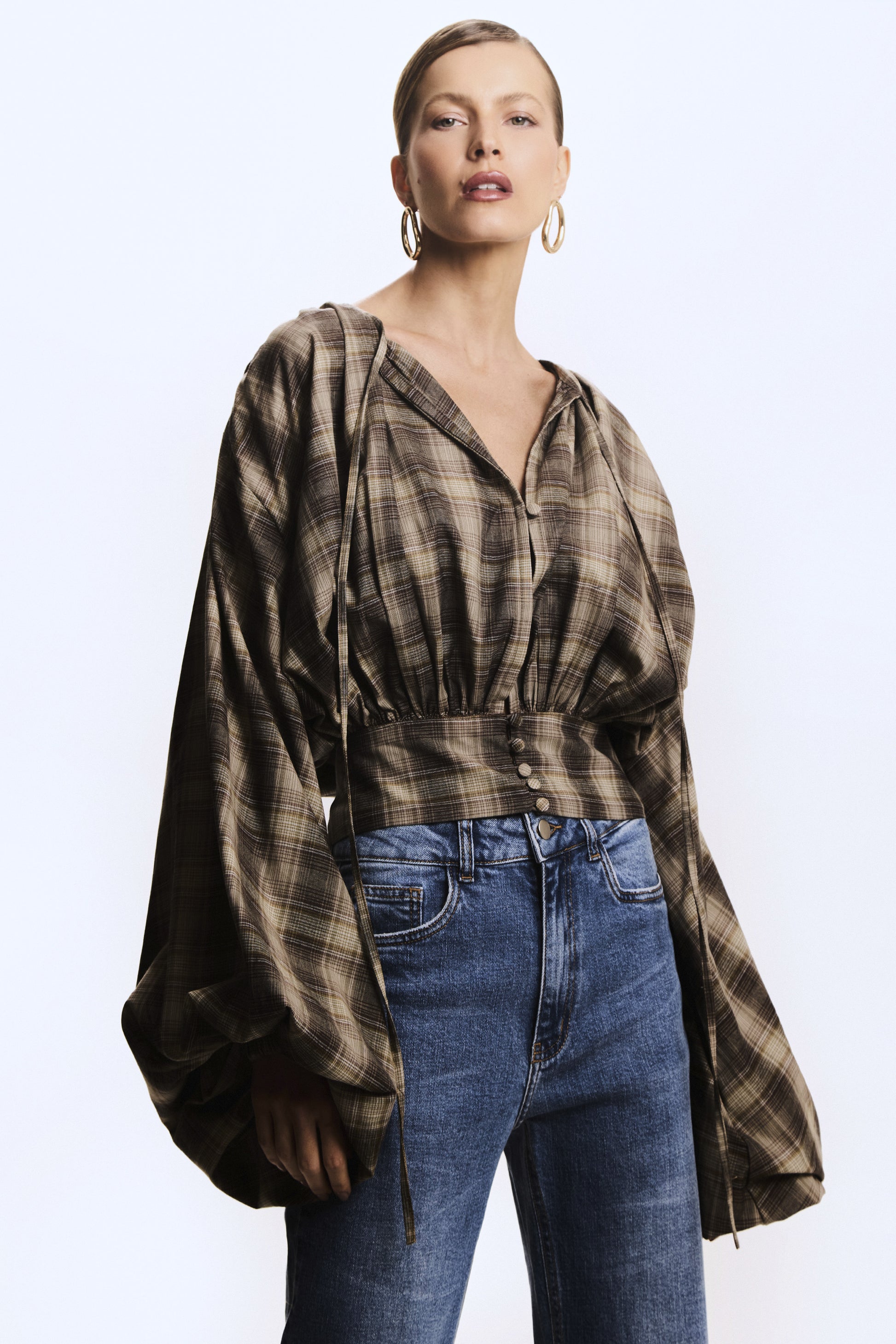 CAMISA MANGA COMPRIDA XADREZ MANGA AMPLA MARROM