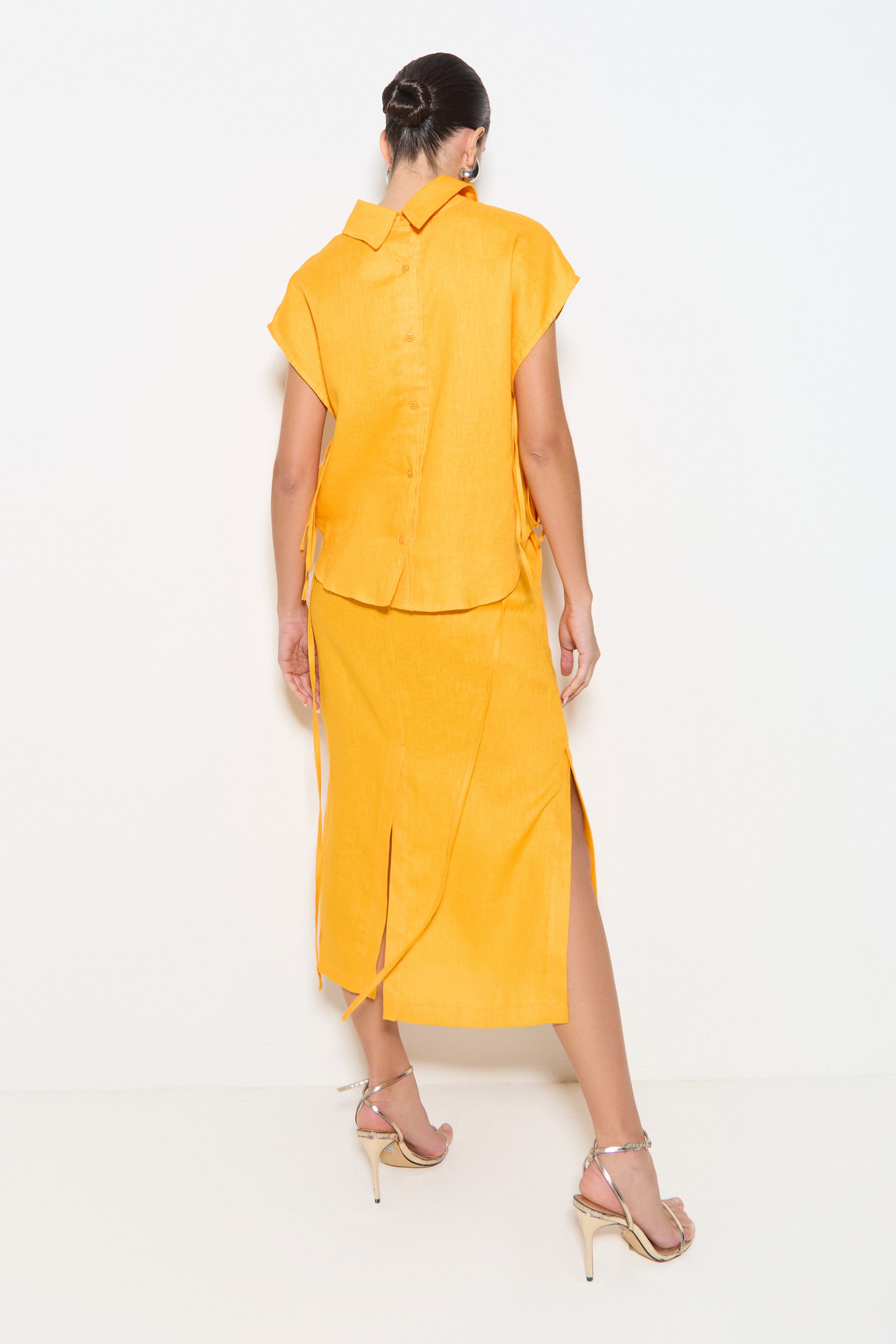 CAMISA SEM MANGA COM ABERTURA FRENTE E COSTAS LARANJA MANGA