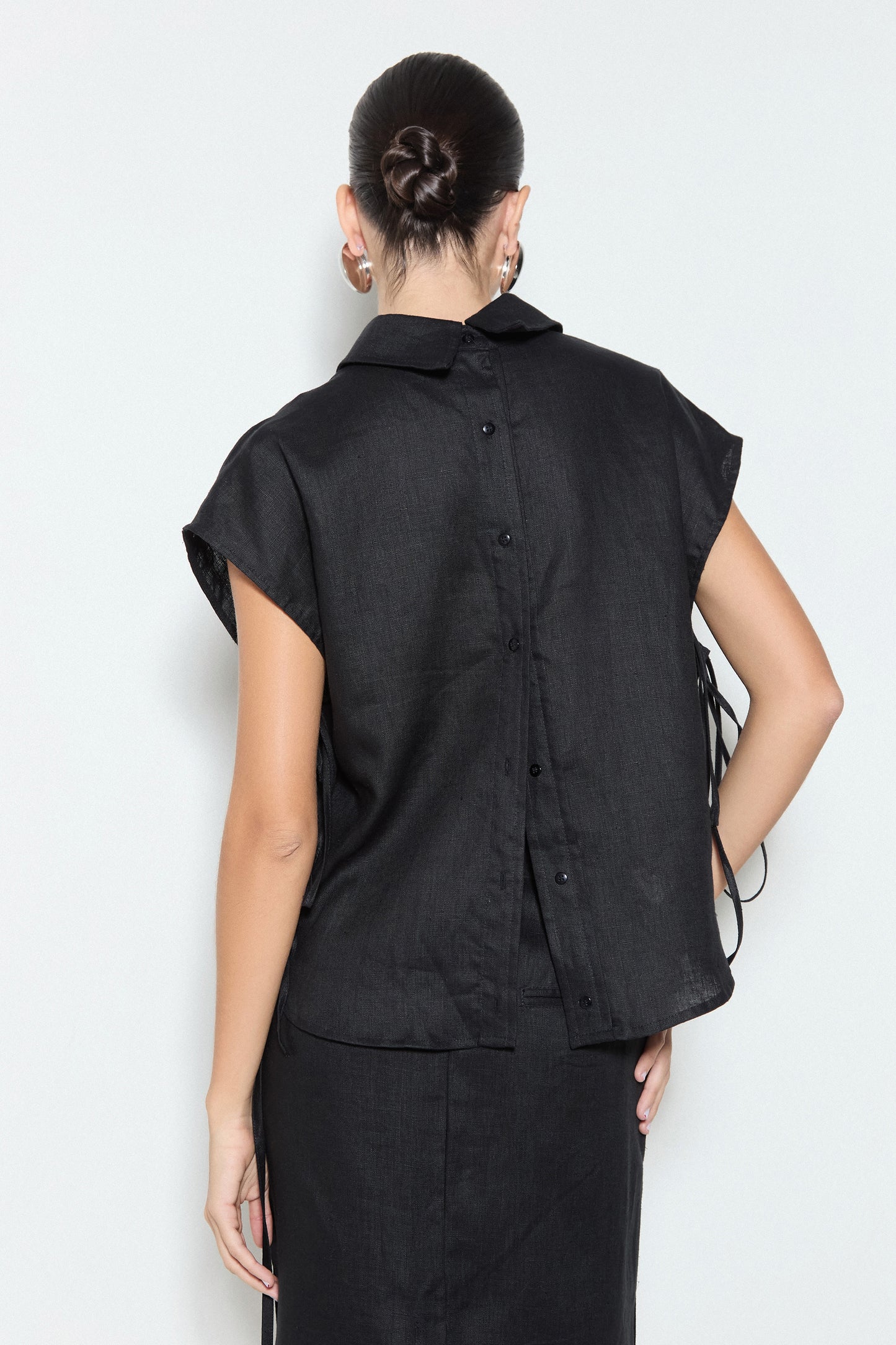 CAMISA SEM MANGA COM ABERTURA FRENTE E COSTAS PRETO
