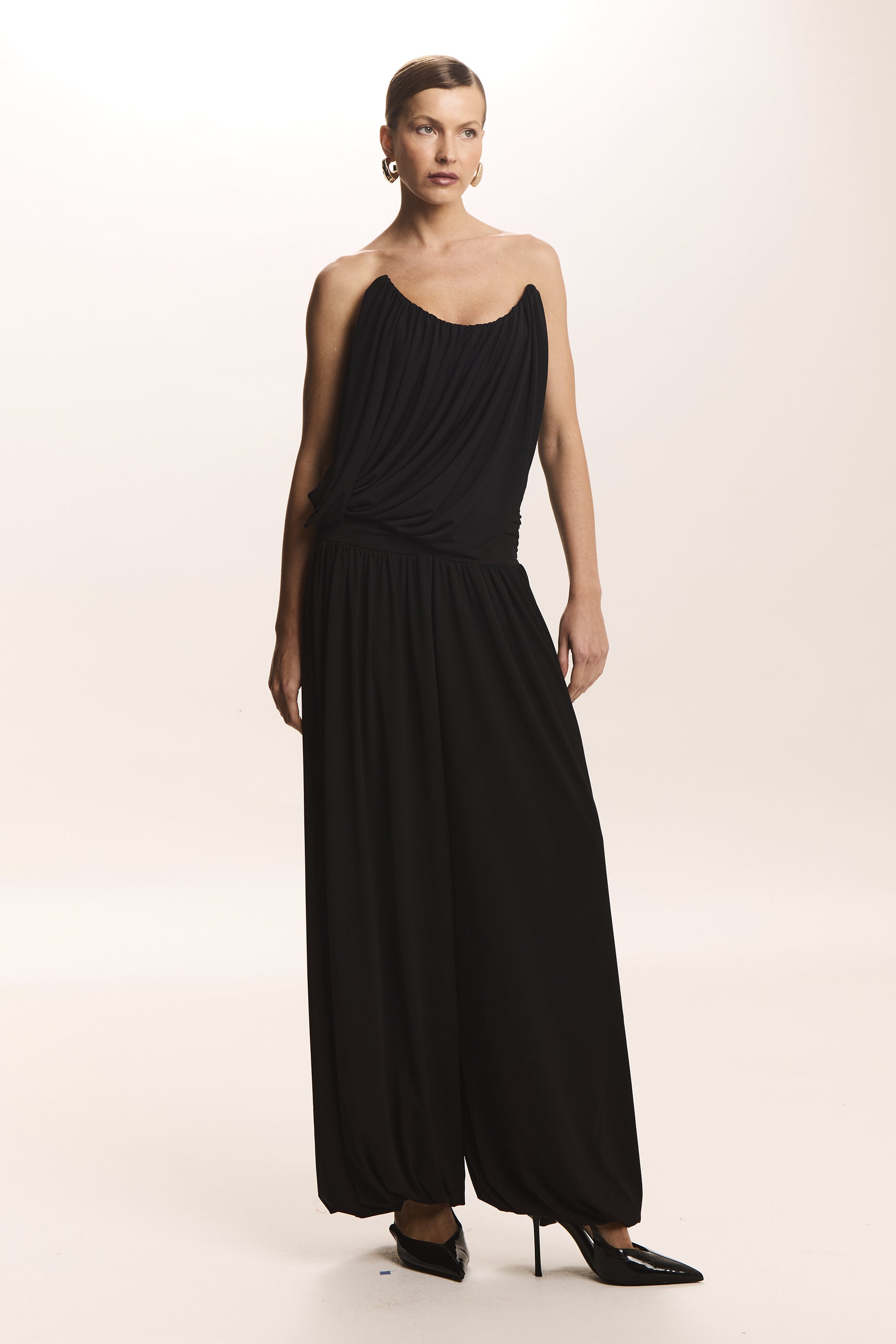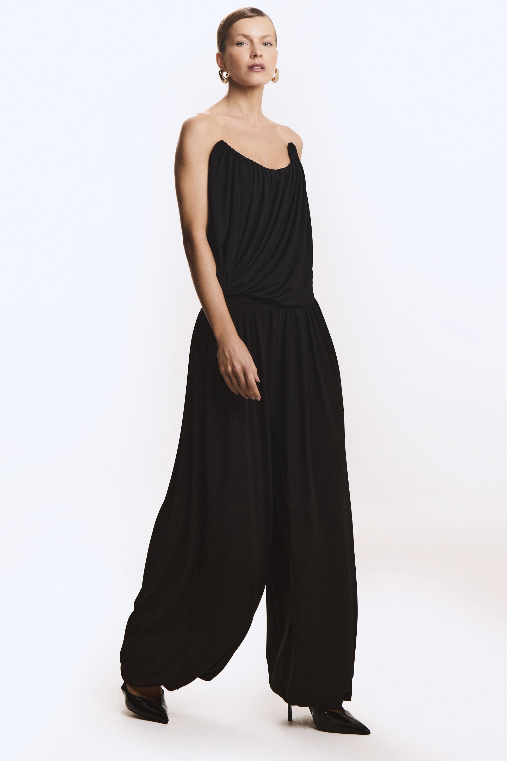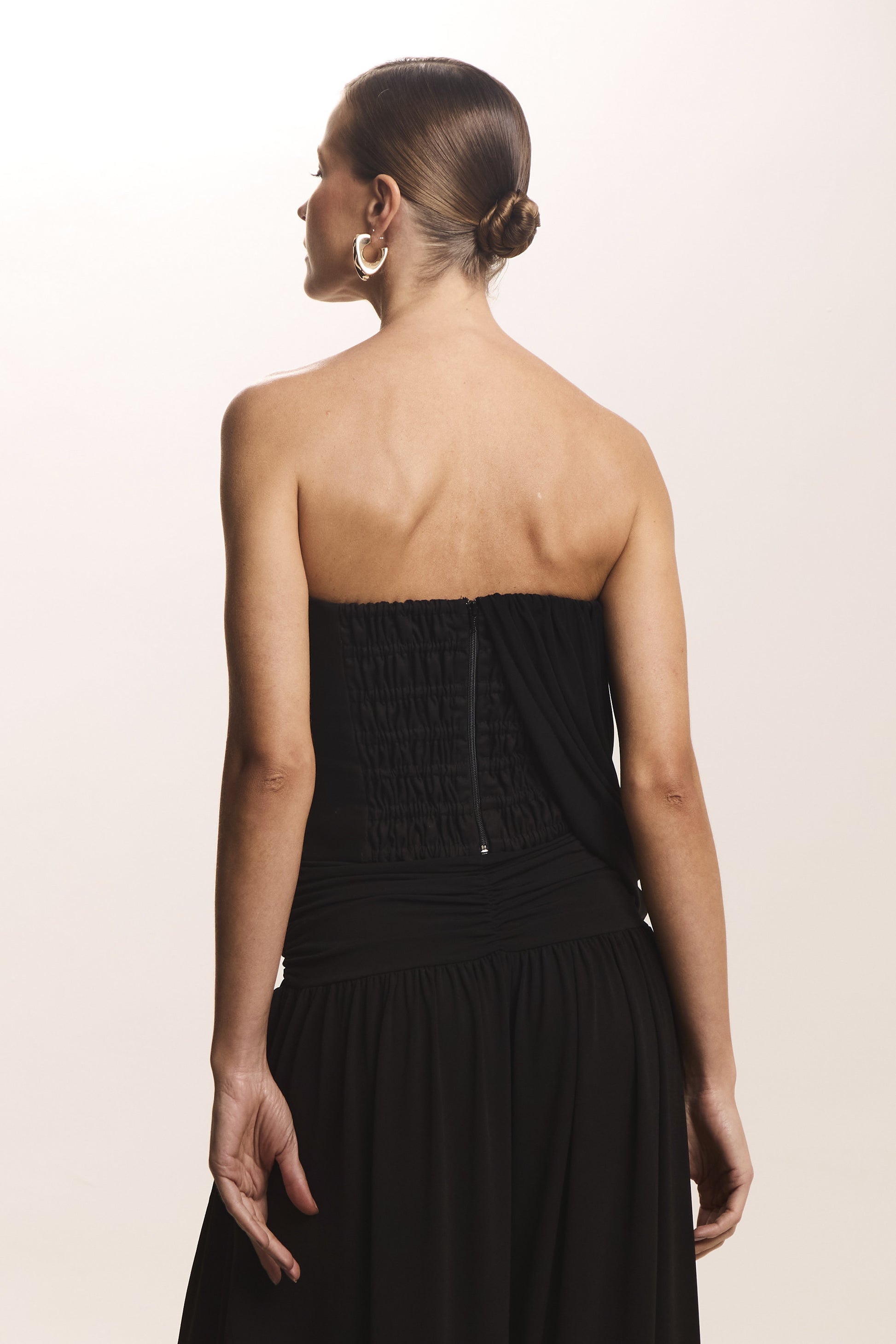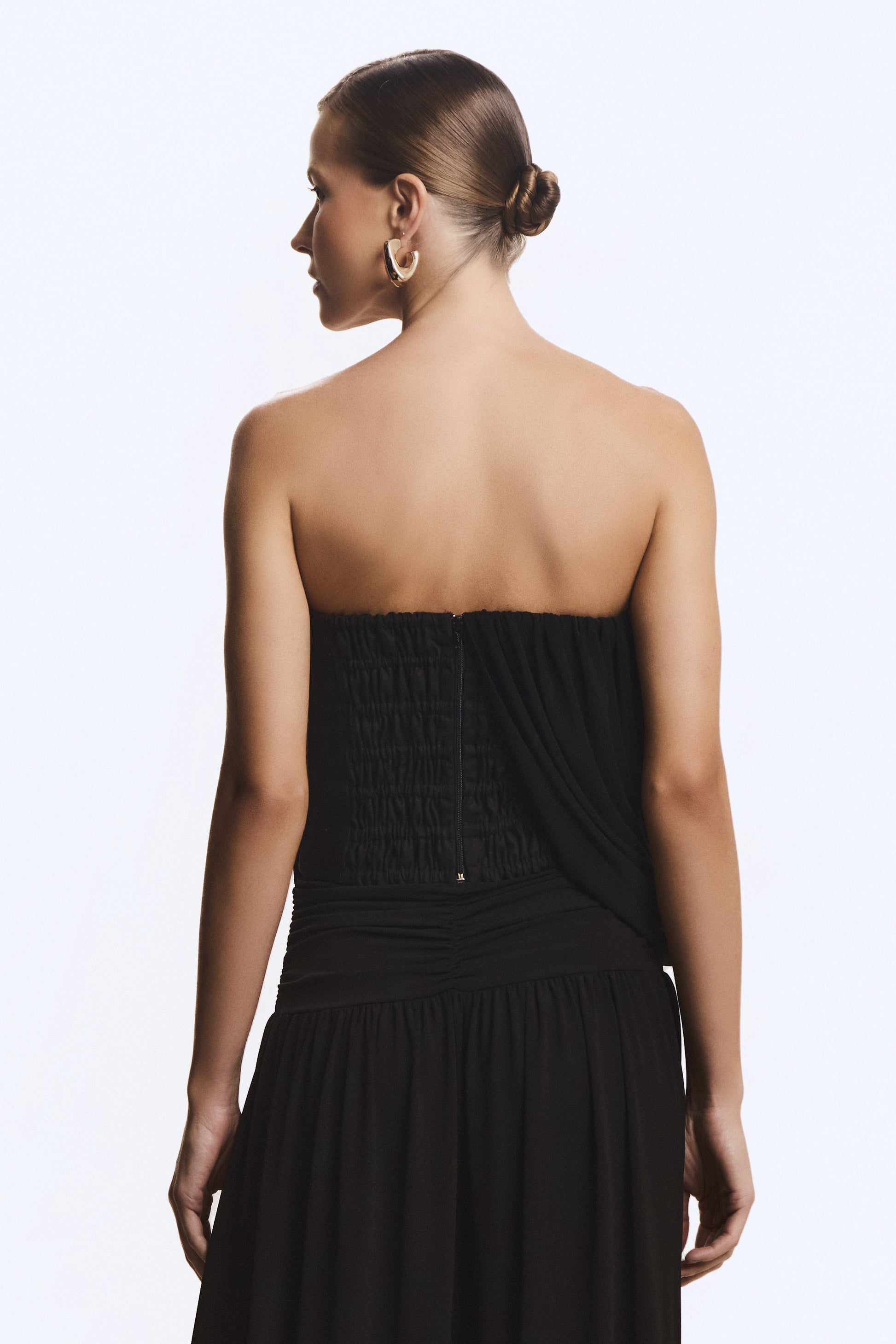 CROPPED TOMARA QUE CAIA RECORTE DECOTE E SOBREPOSICAO FLUIDA PRETO