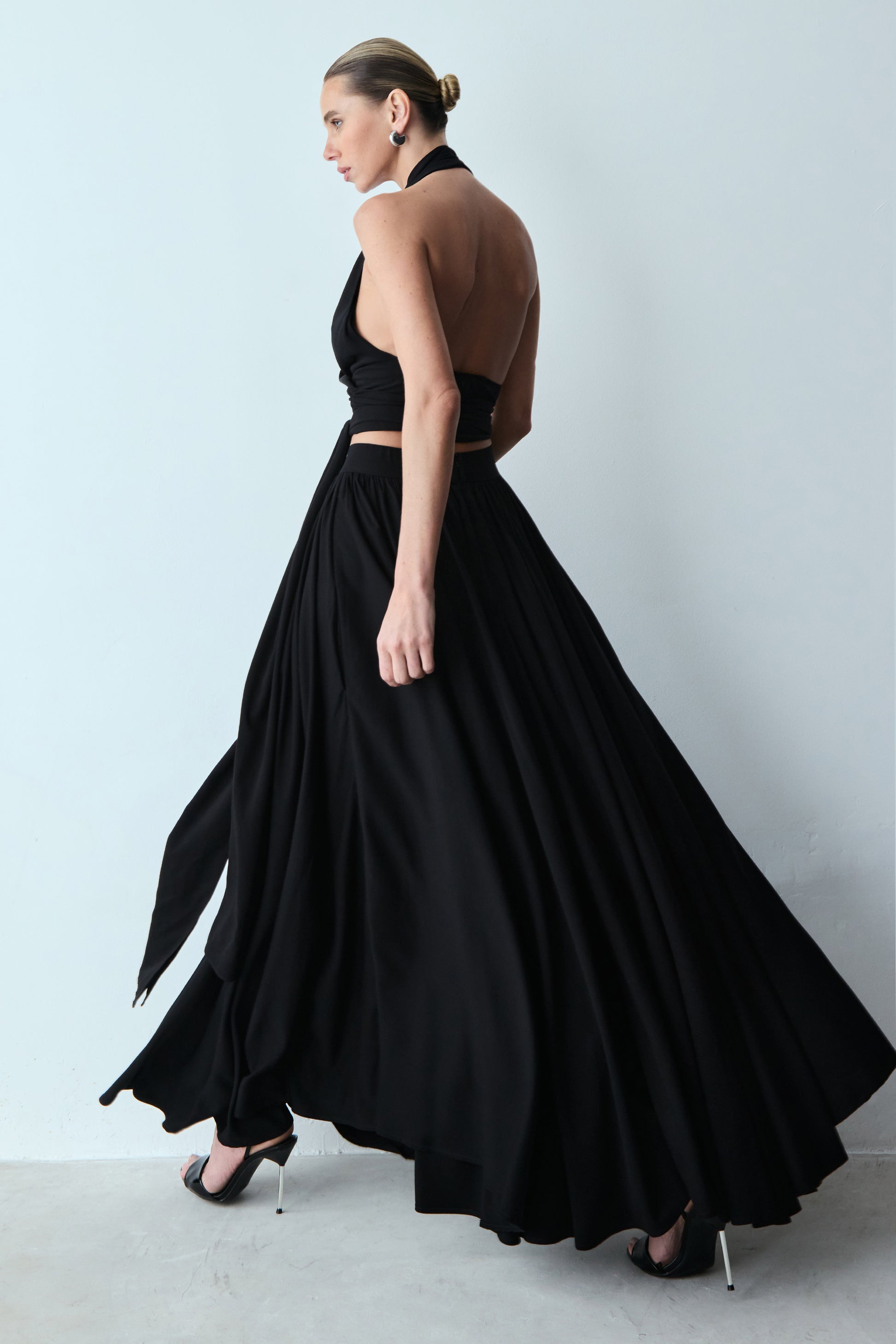 SAIA LONGA AMPLA E RODADA COM COS MEDIO PRETO