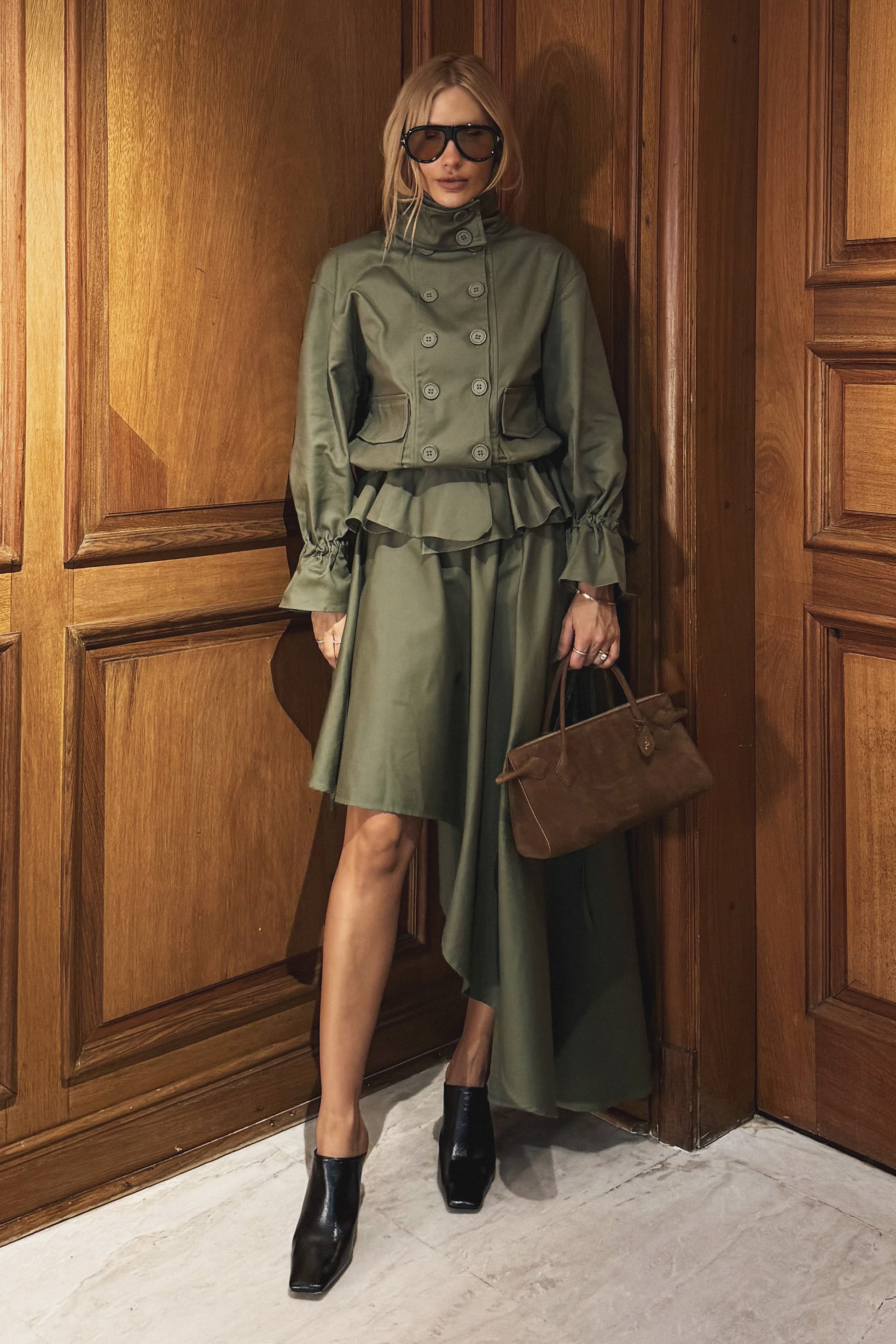 SAIA MIDI COS COM PASSANTES E BARRA ASSIMETRICA VERDE MILITAR