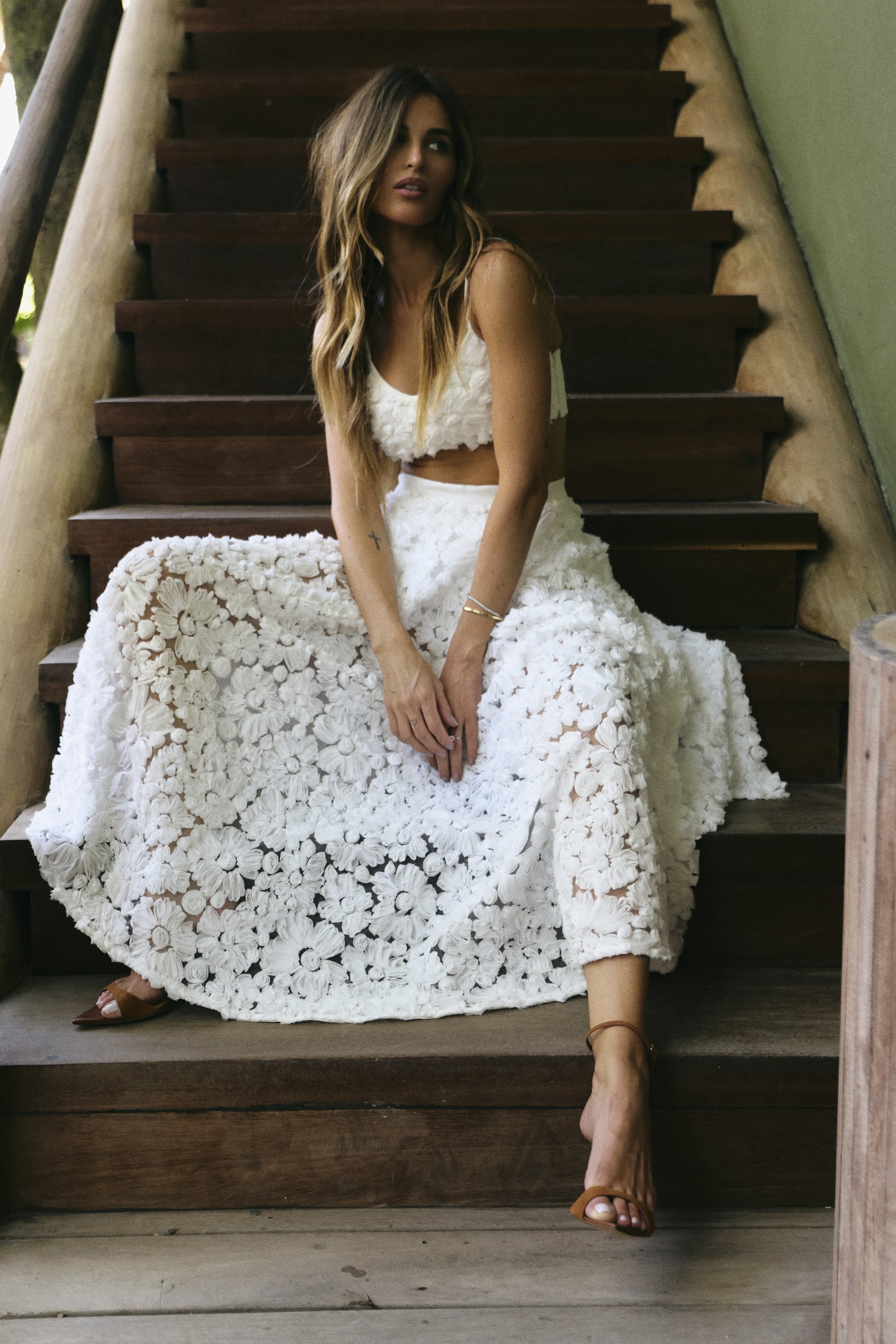 SAIA MIDI EM TULE 3D COM COS MEDIO OFF WHITE