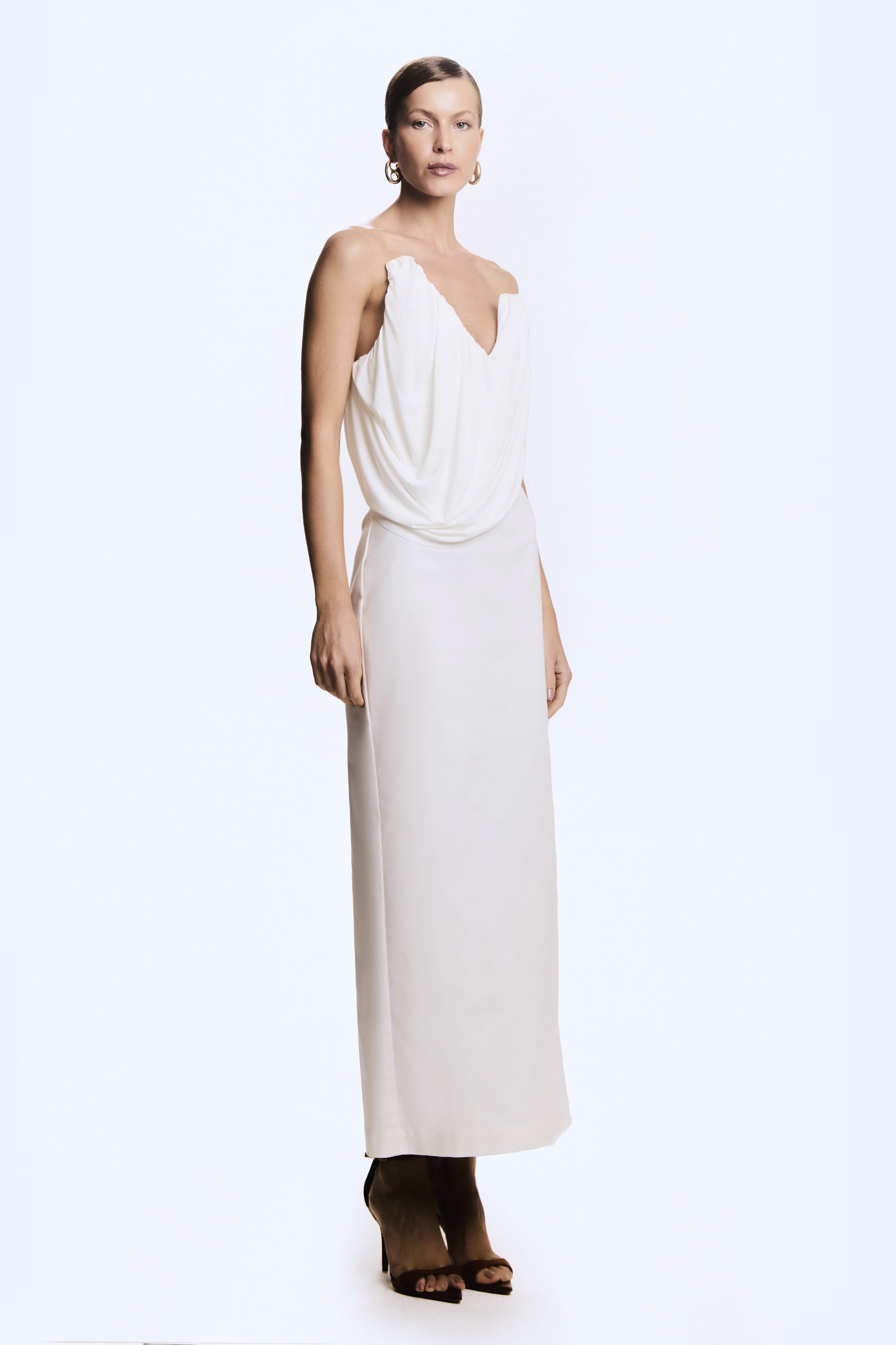 VESTIDO MIDI TOMARA QUE CAIA SOBREPOSICAO FLUIDA OFF WHITE
